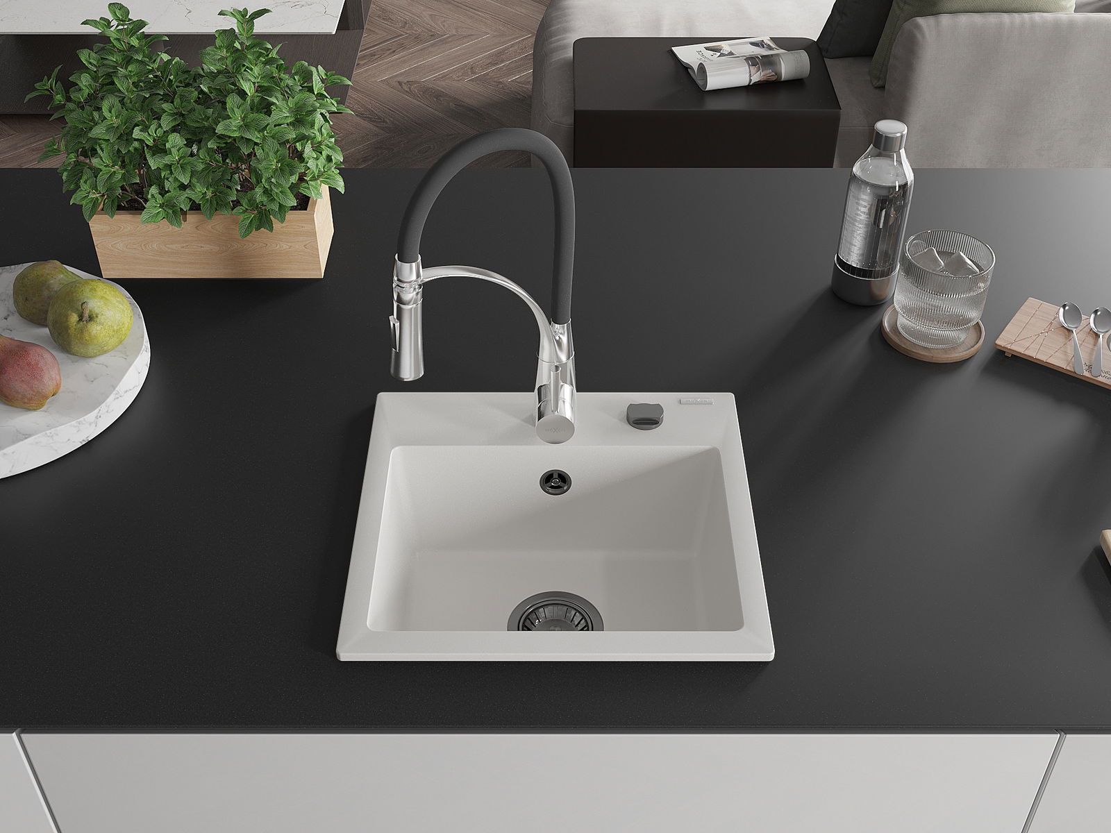 El fregadero está hecho de granito de alta calidad. Constituye un complemento elegante y, sobre todo, práctico para cualquier cocina, independientemente de su estilo. La alta calidad y durabilidad del granito aseguran un uso durante muchos años.