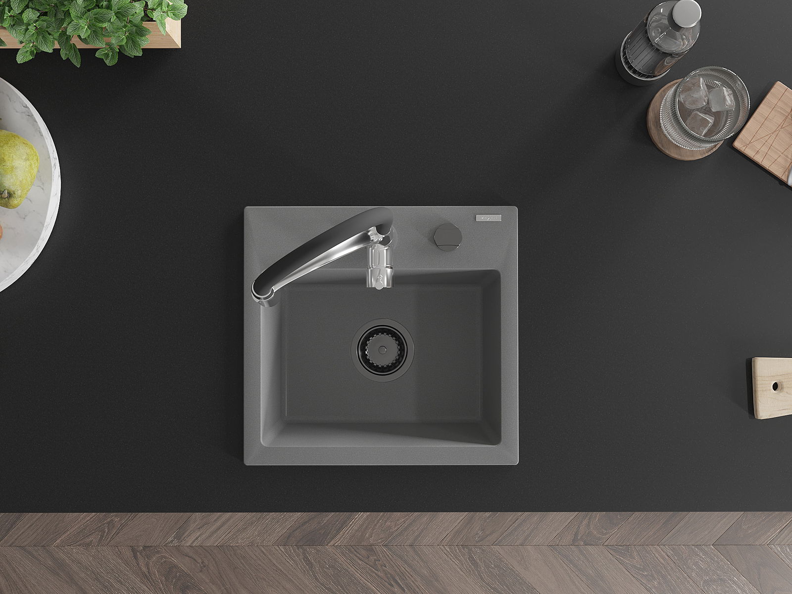 Mexen Milo fregadero de granito 1 cubeta con grifo de cocina Aster, gris - 6505-71-73450-07-B