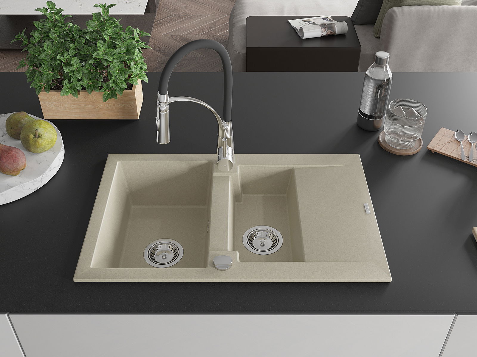 El fregadero está hecho de granito de alta calidad. Constituye un complemento elegante y, sobre todo, práctico para cualquier cocina, independientemente de su estilo. La alta calidad y durabilidad del granito aseguran un uso durante muchos años.