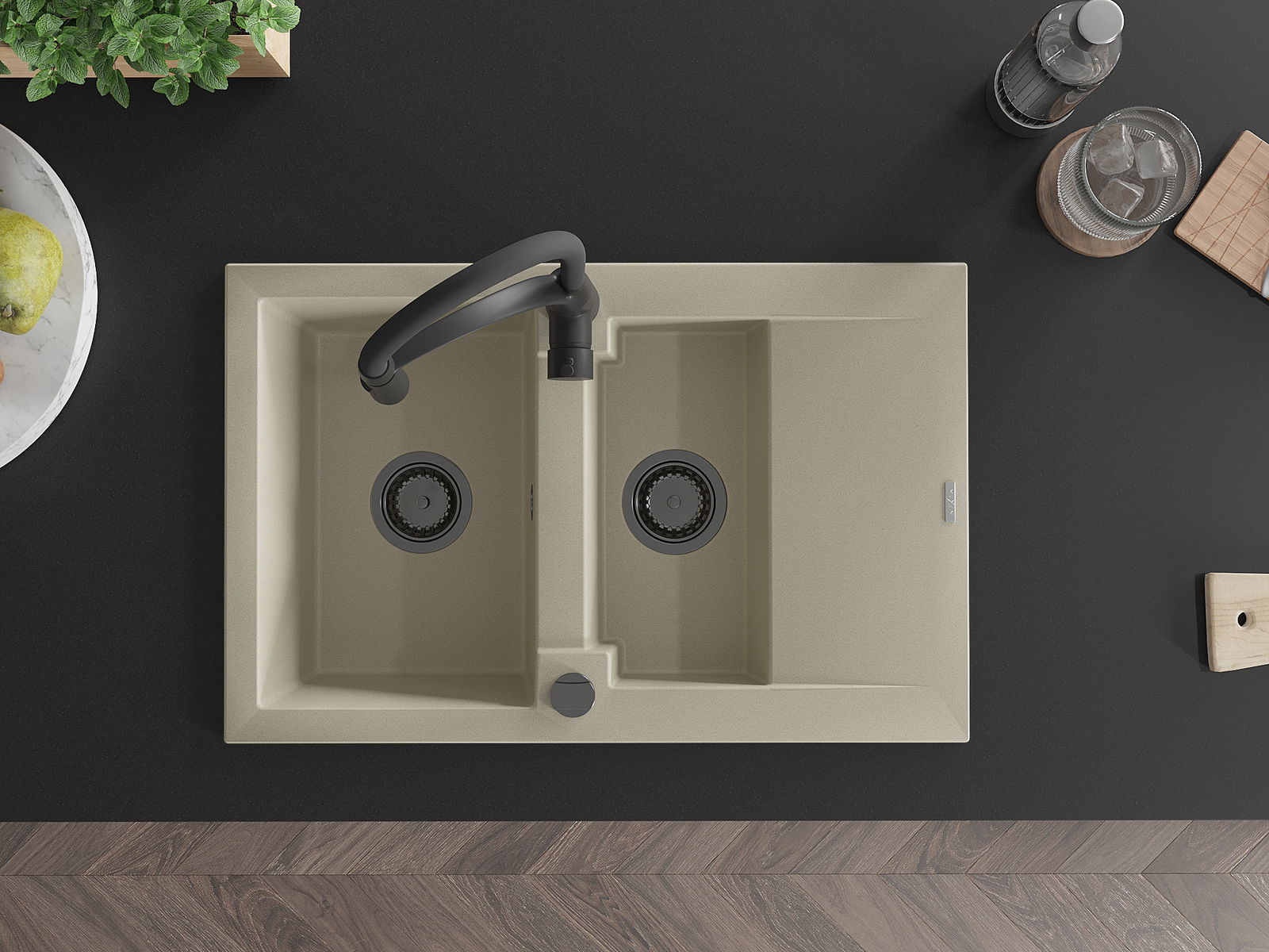 El fregadero está hecho de granito de alta calidad. Constituye un complemento elegante y, sobre todo, práctico para cualquier cocina, independientemente de su estilo. La alta calidad y durabilidad del granito aseguran un uso durante muchos años.