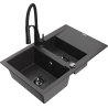 Mexen Gaspar fregadero de granito de 1,5 senos con escurridor y grifo de cocina Aster, negro/plata - 6507-73-73450-57-B