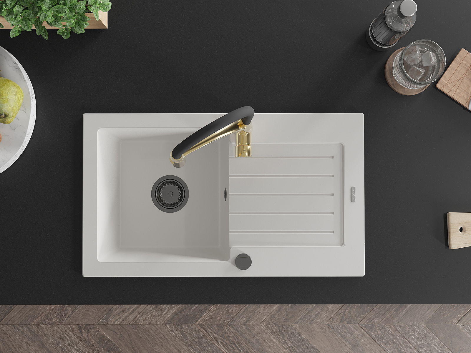 El fregadero está hecho de granito de alta calidad. Constituye un complemento elegante y, sobre todo, práctico para cualquier cocina, independientemente de su estilo. La alta calidad y durabilidad del granito aseguran un uso durante muchos años.