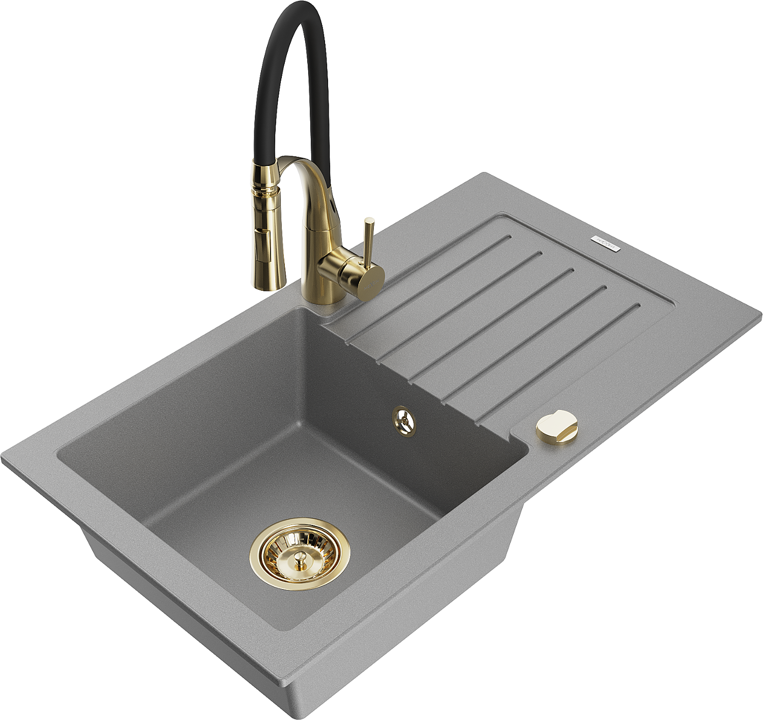 Mexen Pablo fregadero de granito de 1 cubeta con escurridor y grifo de cocina Aster, gris - 6510-71-73450-57-G