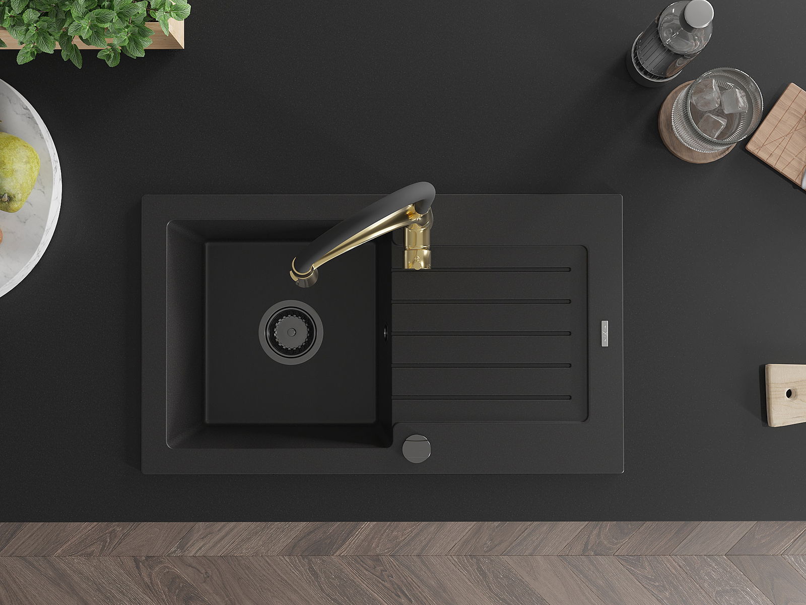 El fregadero está hecho de granito de alta calidad. Constituye un complemento elegante y, sobre todo, práctico para cualquier cocina, independientemente de su estilo. La alta calidad y durabilidad del granito aseguran un uso durante muchos años.