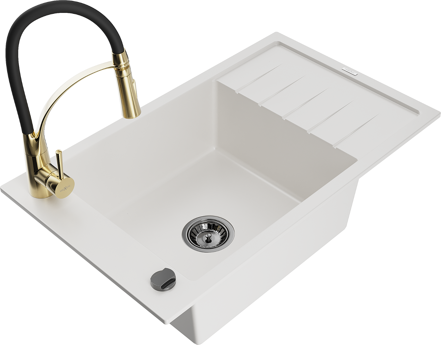 Mexen Elias fregadero de granito 1-comparte con escurridor y grifo de cocina Aster, blanco - 6511-20-73450-57-B