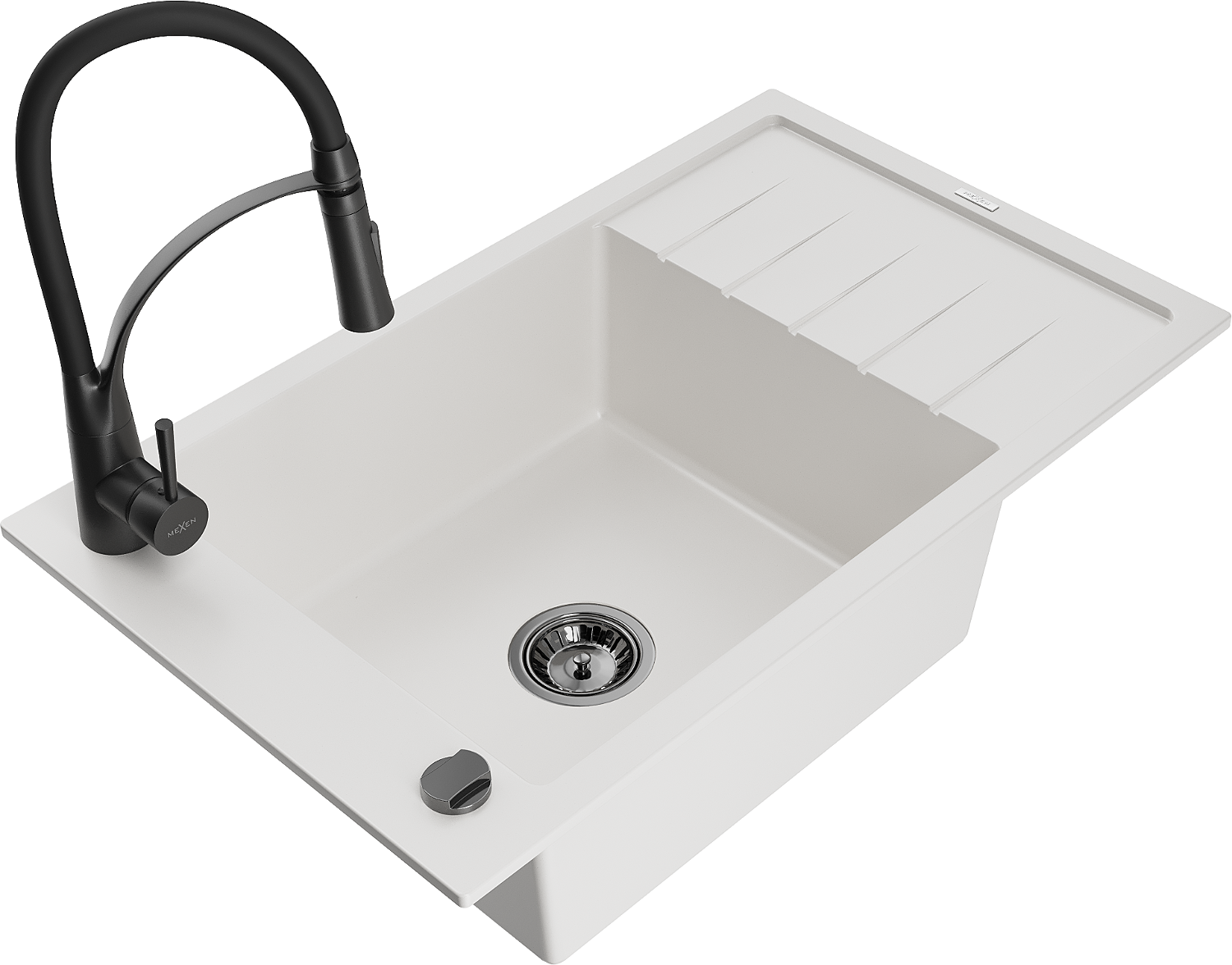 Mexen Elias fregadero de granito de 1 seno con escurridor y grifo de cocina Aster, blanco - 6511-20-73450-70-B