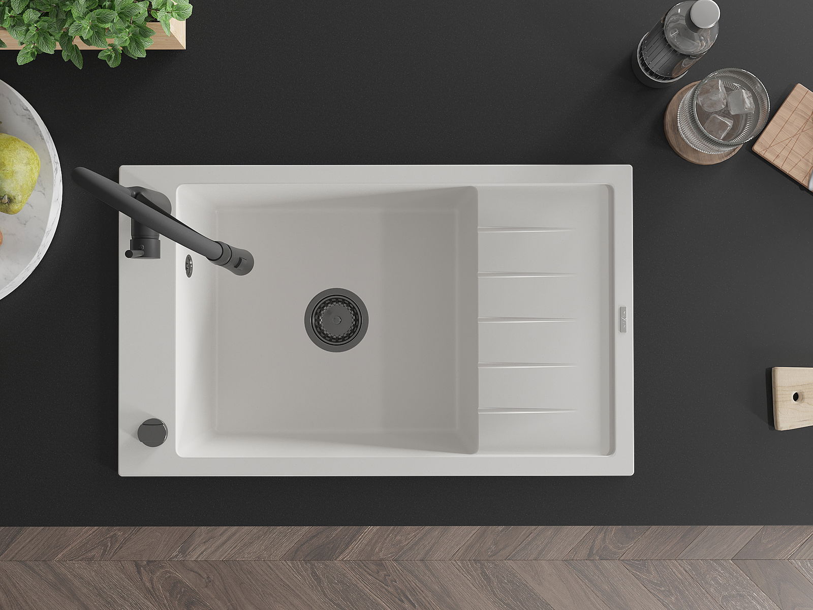 El fregadero está hecho de granito de alta calidad. Constituye un complemento elegante y, sobre todo, práctico para cualquier cocina, independientemente de su estilo. La alta calidad y durabilidad del granito aseguran un uso durante muchos años.