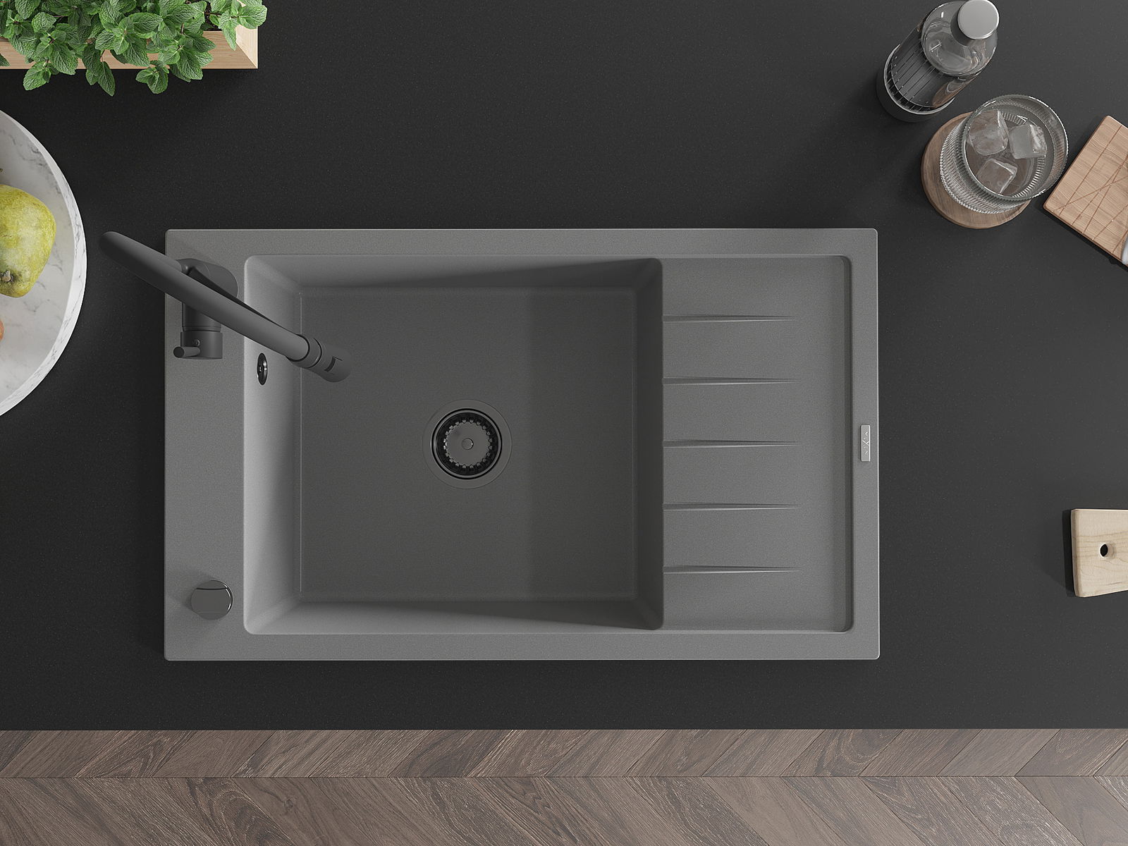 El fregadero está hecho de granito de alta calidad. Constituye un complemento elegante y, sobre todo, práctico para cualquier cocina, independientemente de su estilo. La alta calidad y durabilidad del granito aseguran un uso durante muchos años.