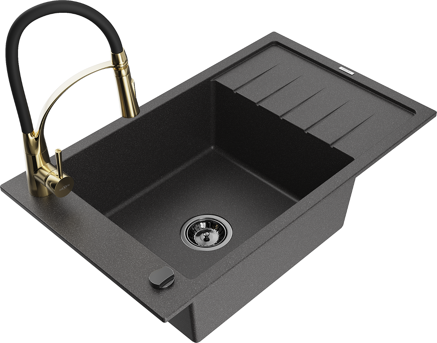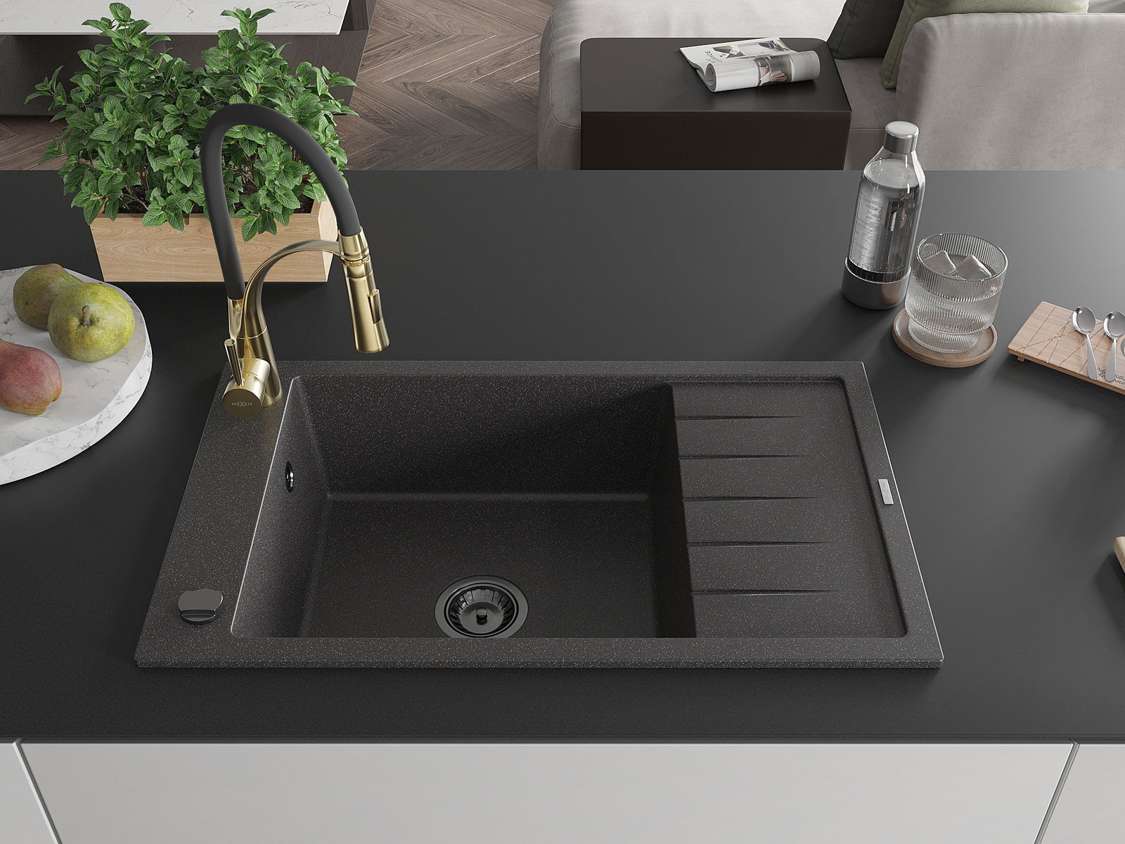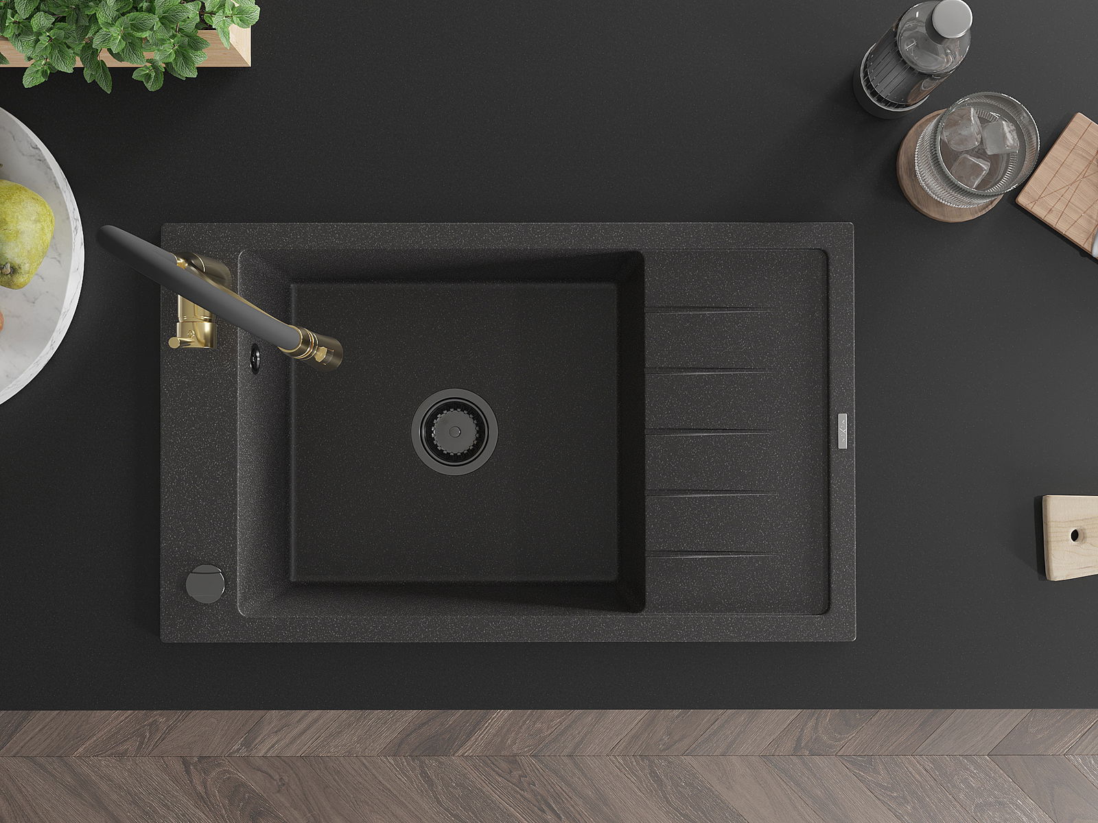 El fregadero está hecho de granito de alta calidad. Constituye un complemento elegante y, sobre todo, práctico para cualquier cocina, independientemente de su estilo. La alta calidad y durabilidad del granito aseguran un uso durante muchos años.