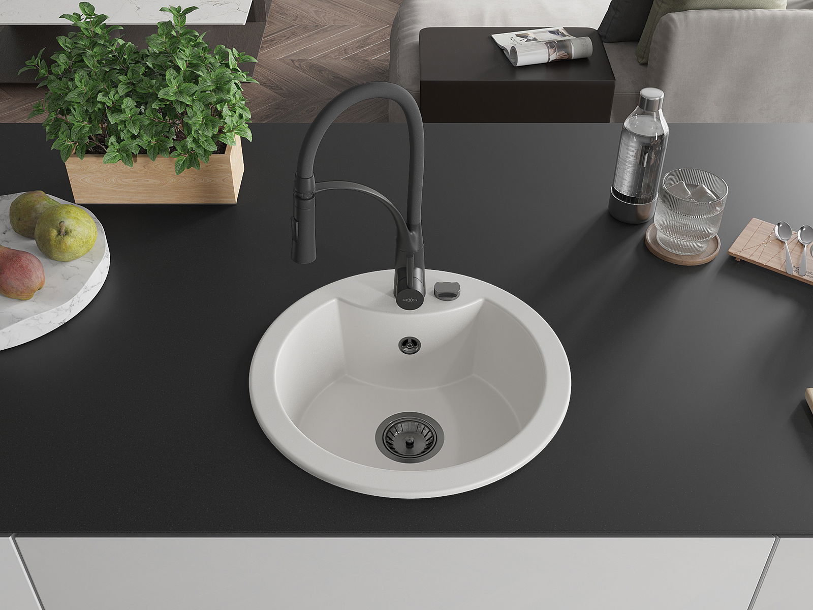 El fregadero está hecho de granito de alta calidad. Constituye un complemento elegante y, sobre todo, práctico para cualquier cocina, independientemente de su estilo. La alta calidad y durabilidad del granito aseguran un uso durante muchos años.