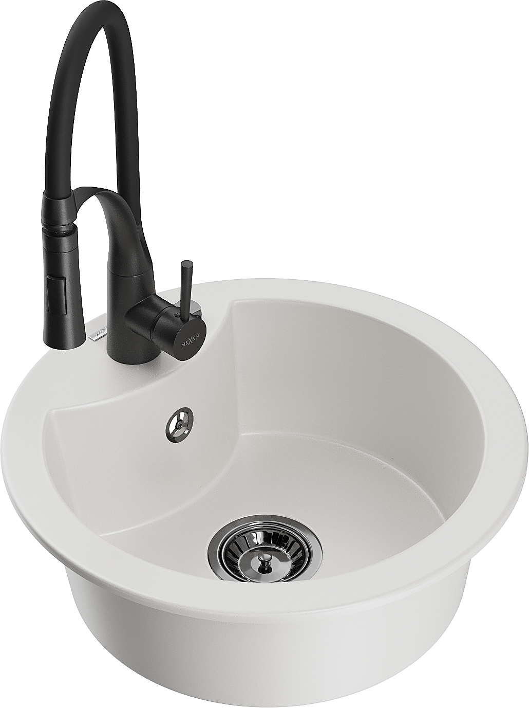 Mexen Diego fregadero de granito de 1 cubeta con grifo de cocina Aster, blanco - 6512-20-73450-70-B