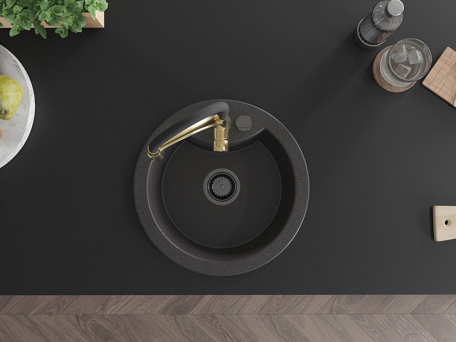 El fregadero está hecho de granito de alta calidad. Constituye un complemento elegante y, sobre todo, práctico para cualquier cocina, independientemente de su estilo. La alta calidad y durabilidad del granito aseguran un uso durante muchos años.