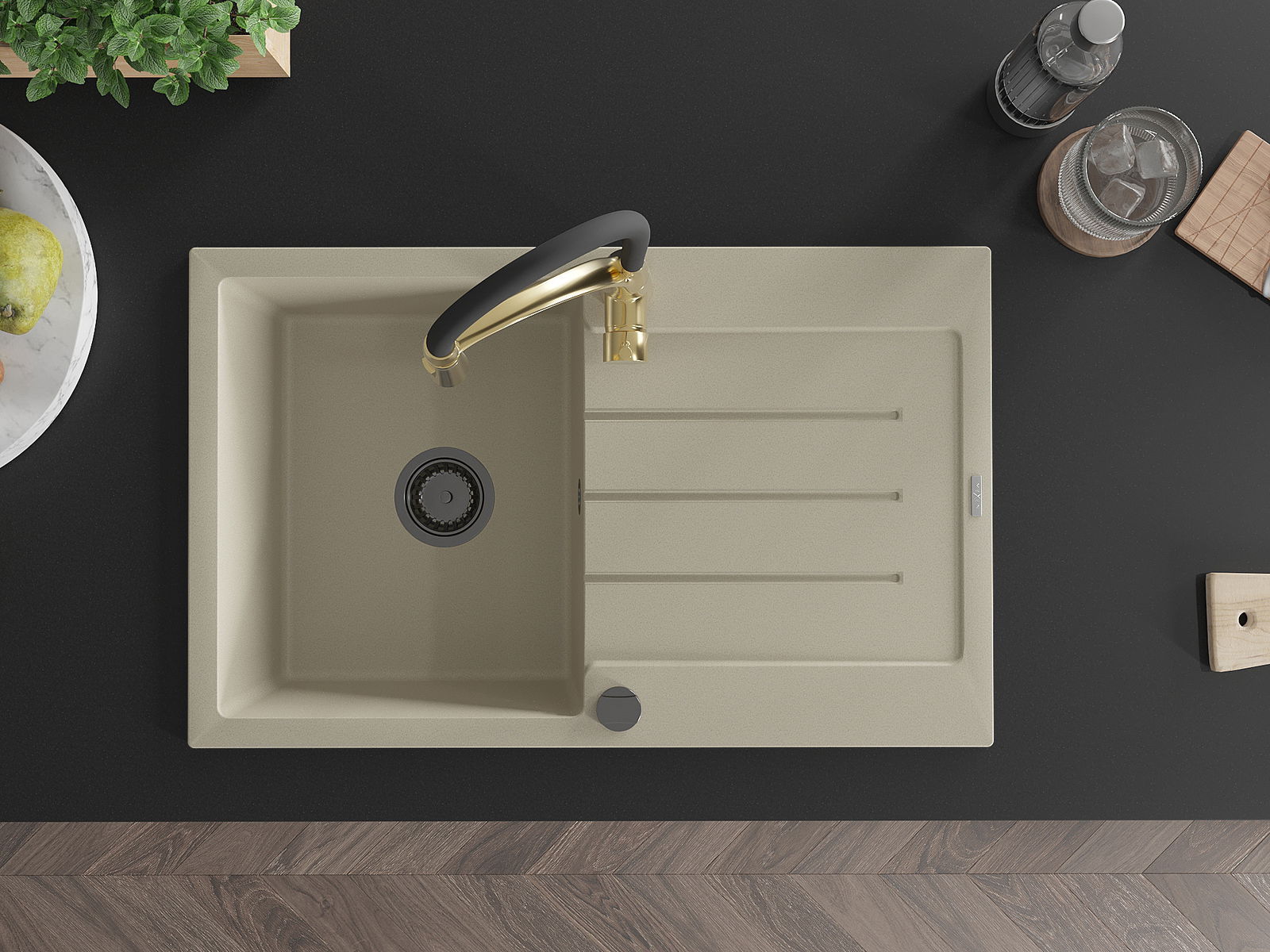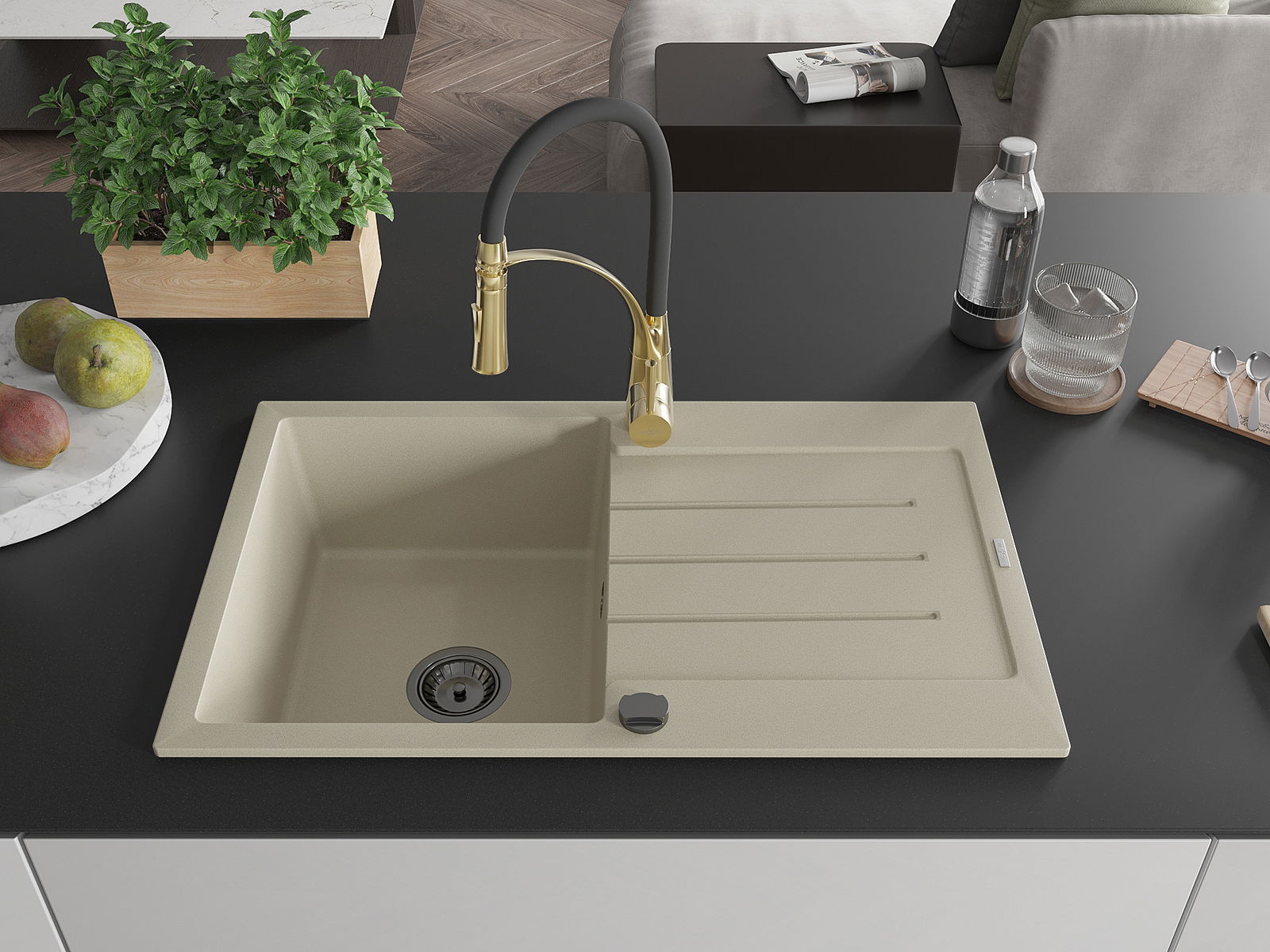 El fregadero está hecho de granito de alta calidad. Constituye un complemento elegante y, sobre todo, práctico para cualquier cocina, independientemente de su estilo. La alta calidad y durabilidad del granito aseguran un uso durante muchos años.