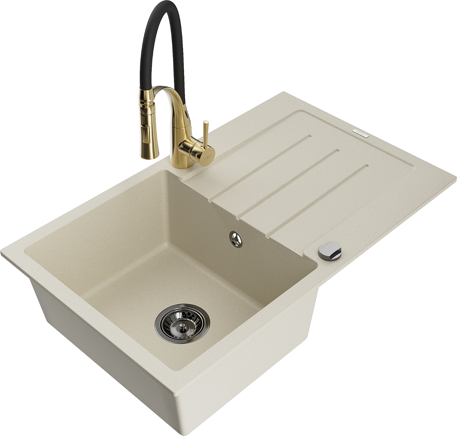 Mexen Bruno fregadero de granito de 1 taza con escurridor y grifo de cocina Aster, beige - 6513-69-73450-57-B