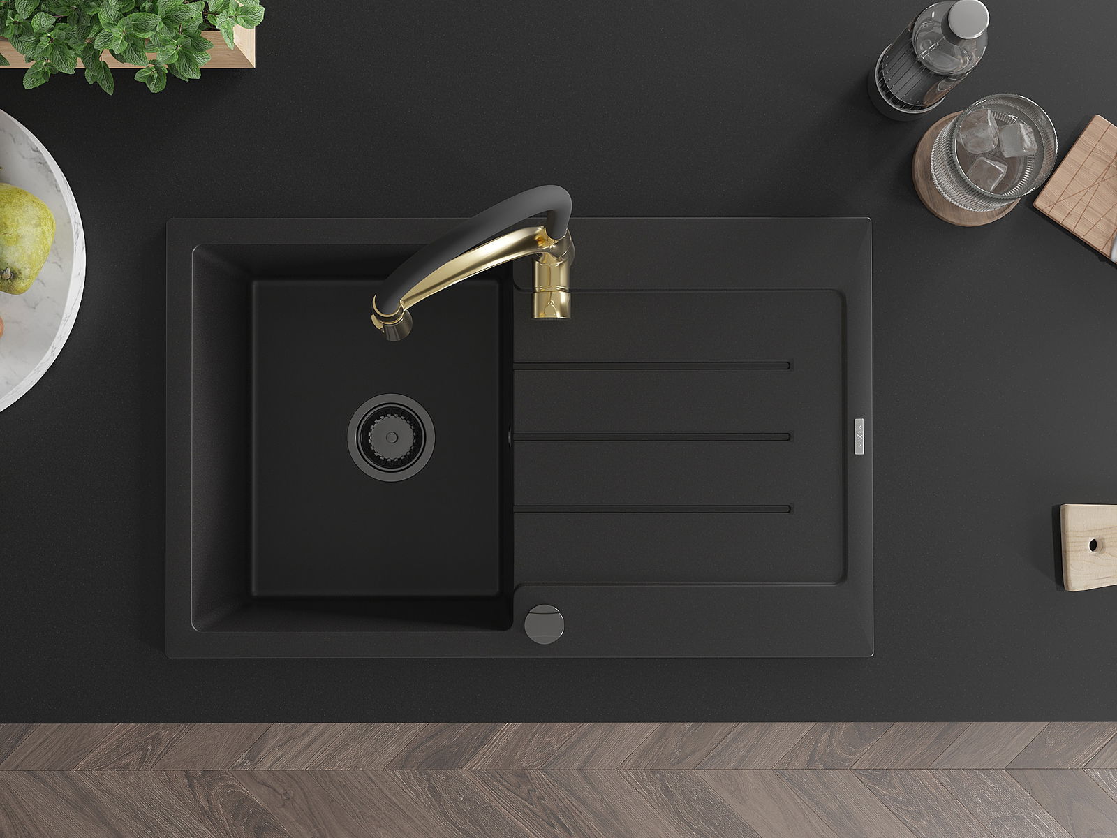 El fregadero está hecho de granito de alta calidad. Constituye un complemento elegante y, sobre todo, práctico para cualquier cocina, independientemente de su estilo. La alta calidad y durabilidad del granito aseguran un uso durante muchos años.