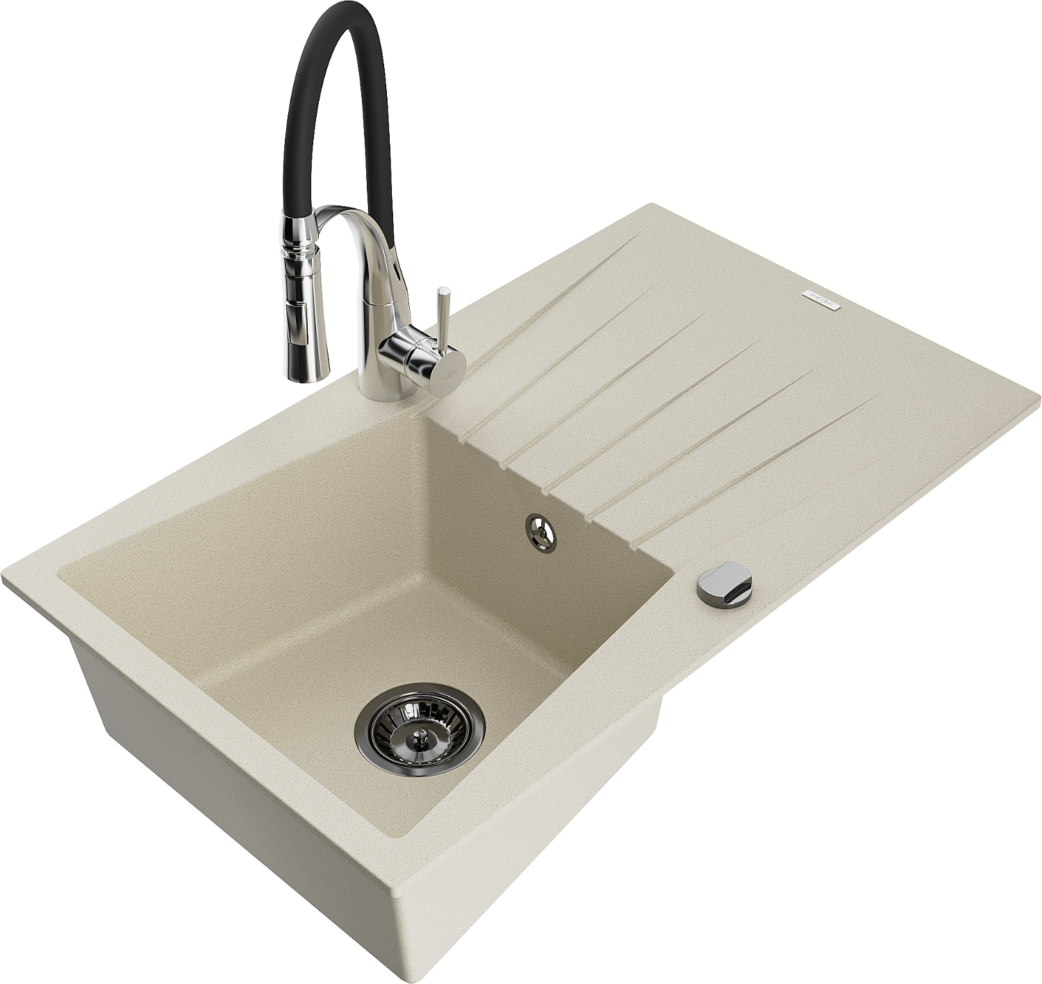 El fregadero está hecho de granito de alta calidad. Constituye un complemento elegante y, sobre todo, práctico para cualquier cocina, independientemente de su estilo. La alta calidad y durabilidad del granito aseguran un uso durante muchos años.