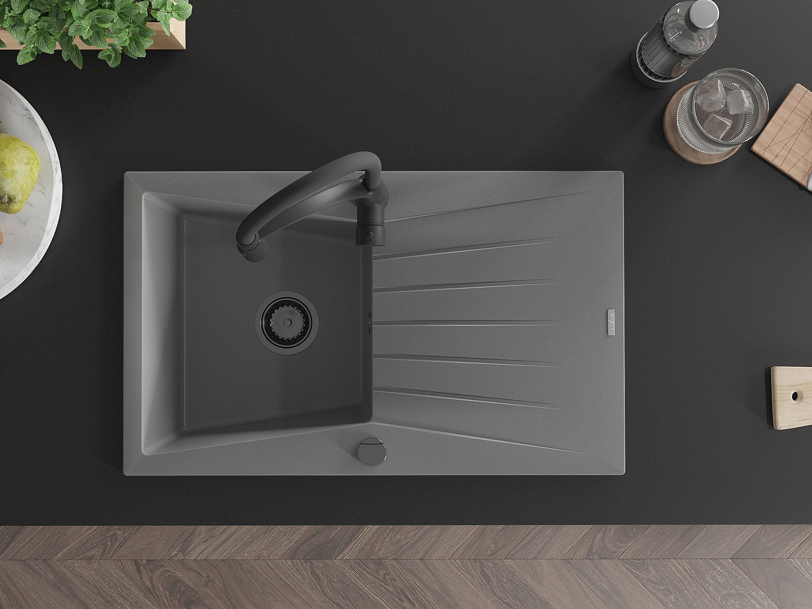 El fregadero está hecho de granito de alta calidad. Constituye un complemento elegante y, sobre todo, práctico para cualquier cocina, independientemente de su estilo. La alta calidad y durabilidad del granito aseguran un uso durante muchos años.