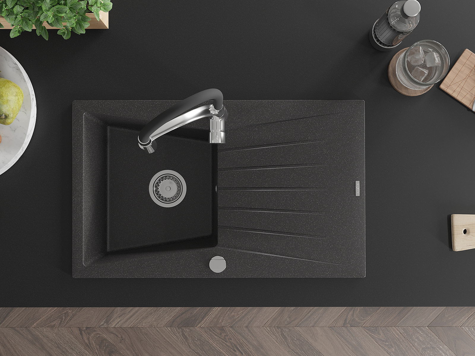 El fregadero está hecho de granito de alta calidad. Constituye un complemento elegante y, sobre todo, práctico para cualquier cocina, independientemente de su estilo. La alta calidad y durabilidad del granito aseguran un uso durante muchos años.