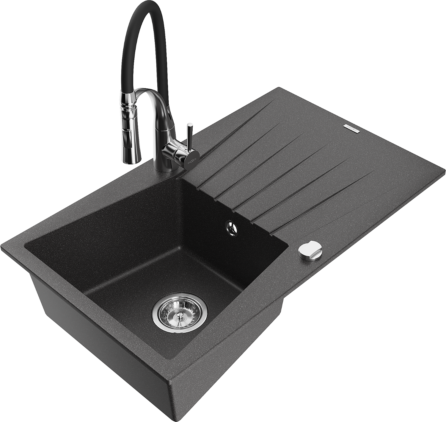 Mexen Cesar fregadero de cocina de granito de 1 seno con escurridor y grifo de cocina Aster, negro moteado - 6514-76-73450-07