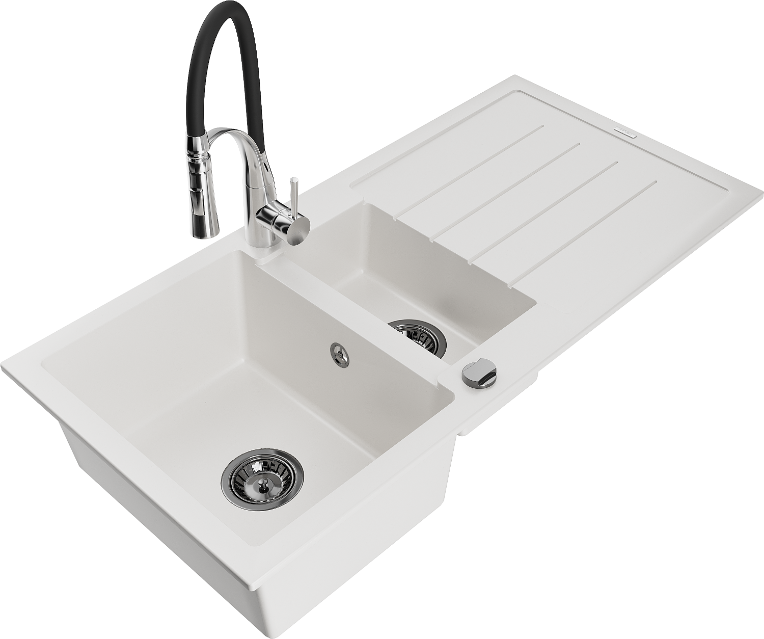 Mexen Andres fregadero de granito 1,5 senos con escurridor y grifo de cocina Aster, blanco - 6515-20-73450-07-B