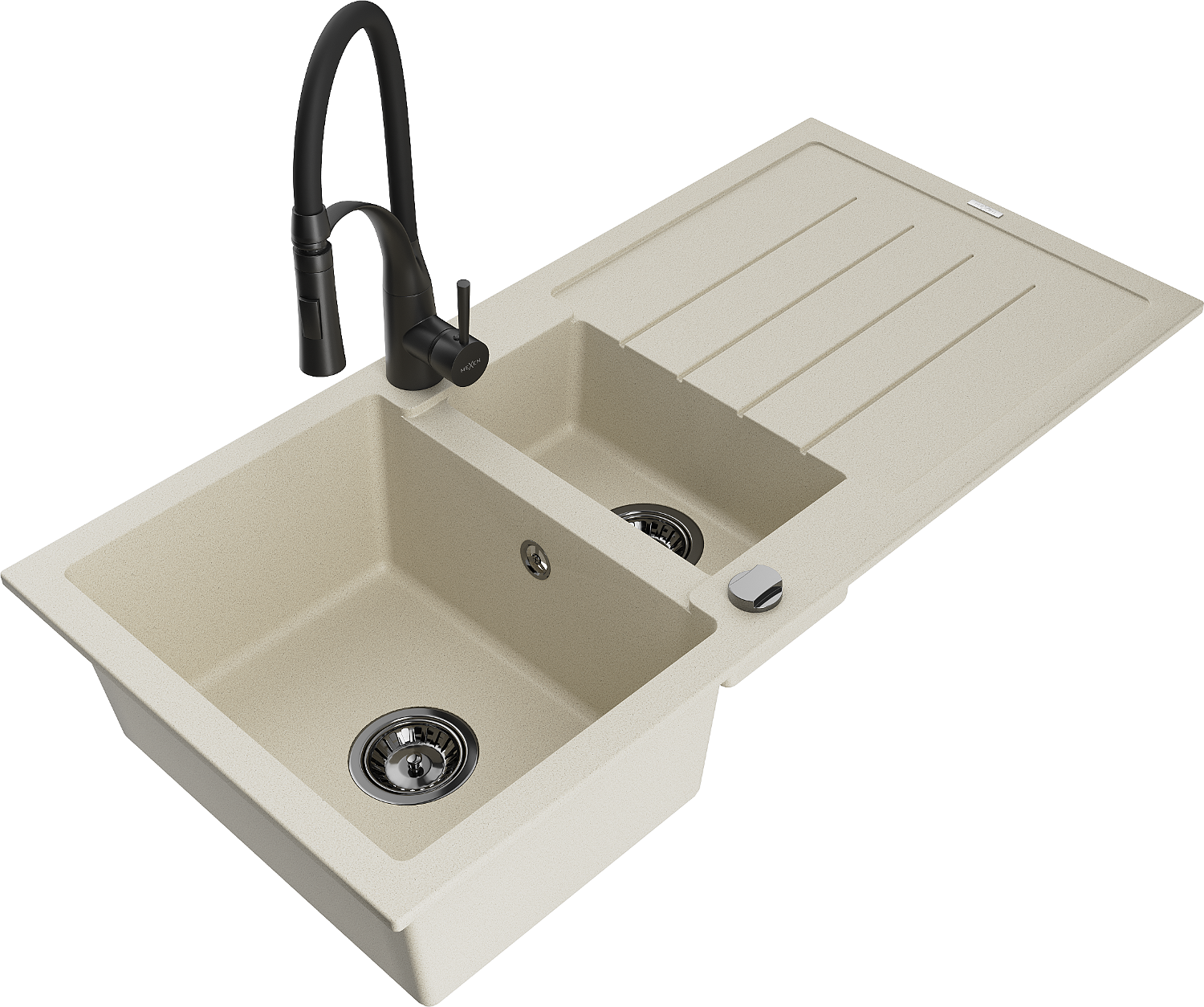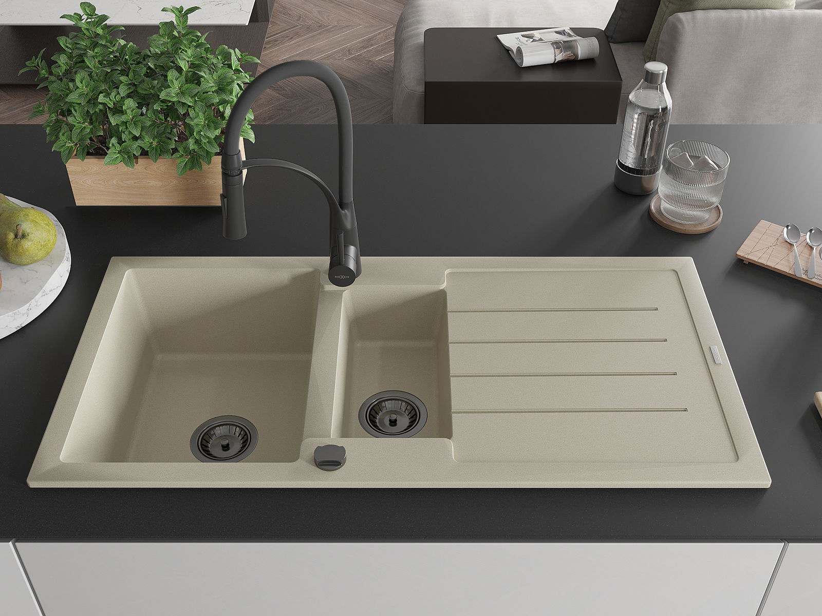 El fregadero está hecho de granito de alta calidad. Es un complemento elegante y, sobre todo, práctico para cualquier cocina, independientemente de su estilo. La alta calidad y durabilidad del granito aseguran un uso prolongado durante años.