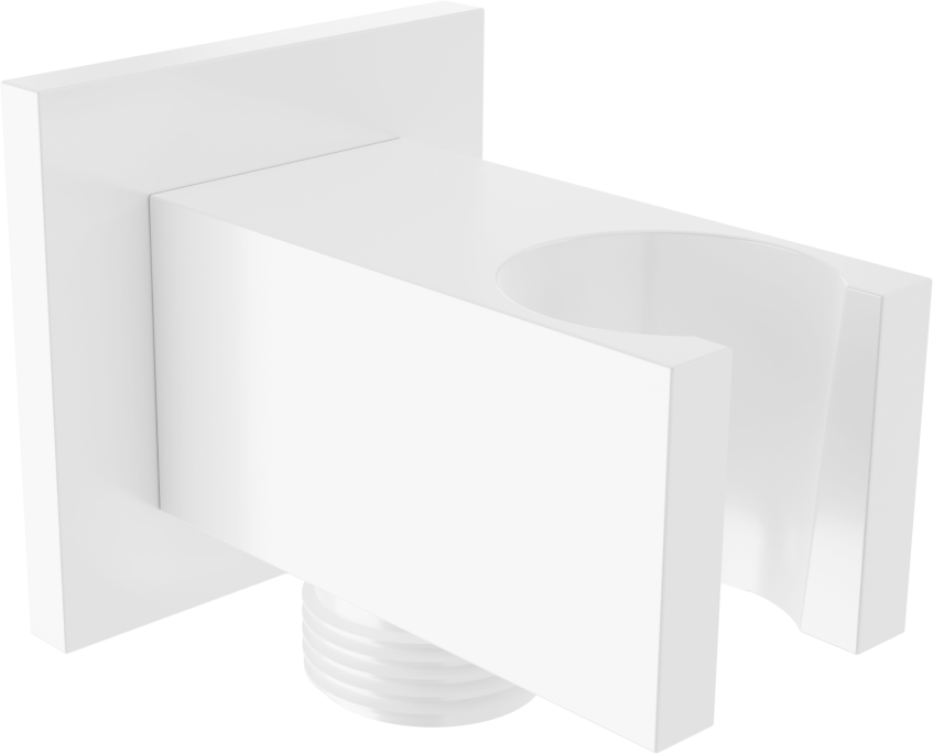 La conexión angular está equipada con un soporte para el mango de ducha. Es una solución práctica y conveniente que permite ahorrar espacio y facilita el uso diario al proporcionar un acceso rápido al mango de ducha.