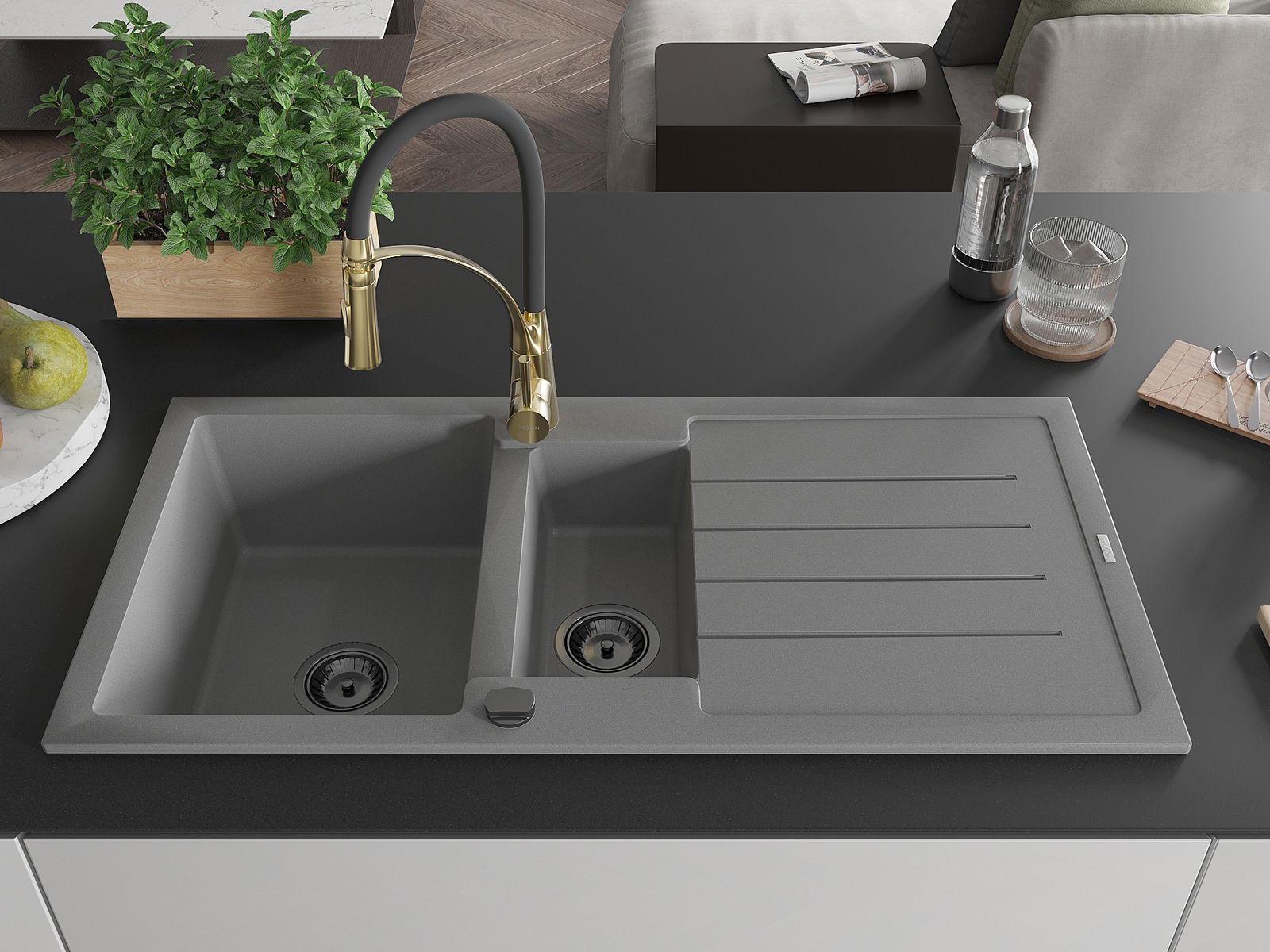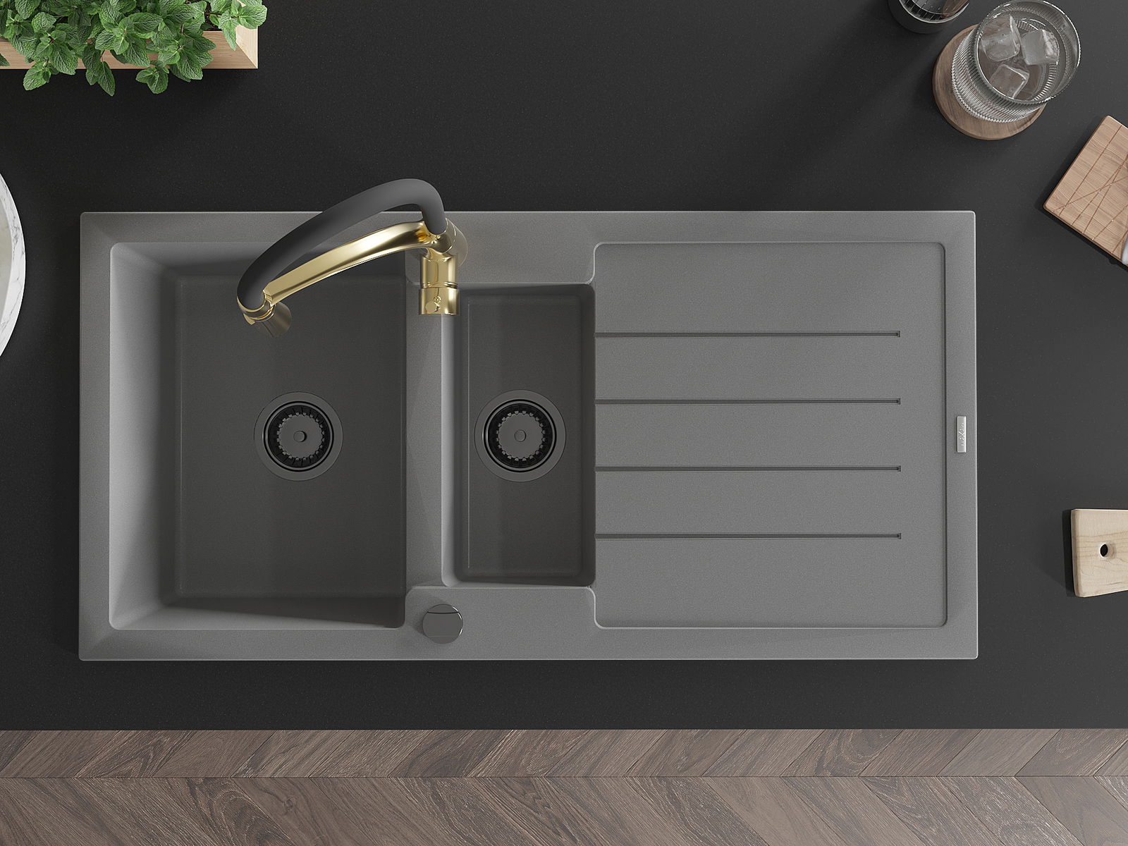 El fregadero está hecho de granito de alta calidad. Constituye un complemento elegante y, sobre todo, práctico para cualquier cocina, independientemente de su estilo. La alta calidad y durabilidad del granito aseguran un uso durante muchos años.
