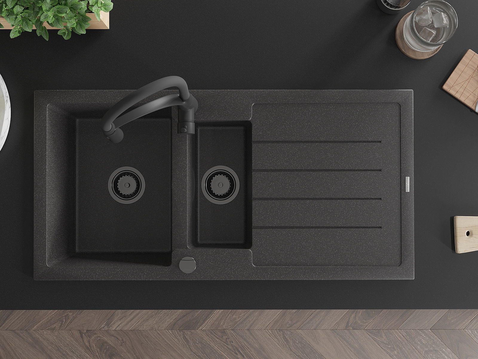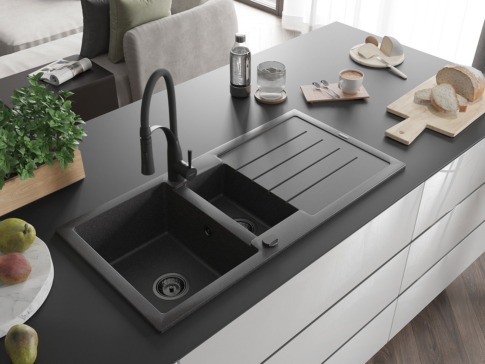 El fregadero está hecho de granito de alta calidad. Constituye un complemento elegante y, sobre todo, práctico para cualquier cocina, independientemente de su estilo. La alta calidad y durabilidad del granito aseguran un uso durante muchos años.