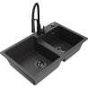 Mexen Tomas fregadero de granito de 2 compartimentos con grifo de cocina Aster, negro/metalizado plateado - 6516-73-73450-70-B