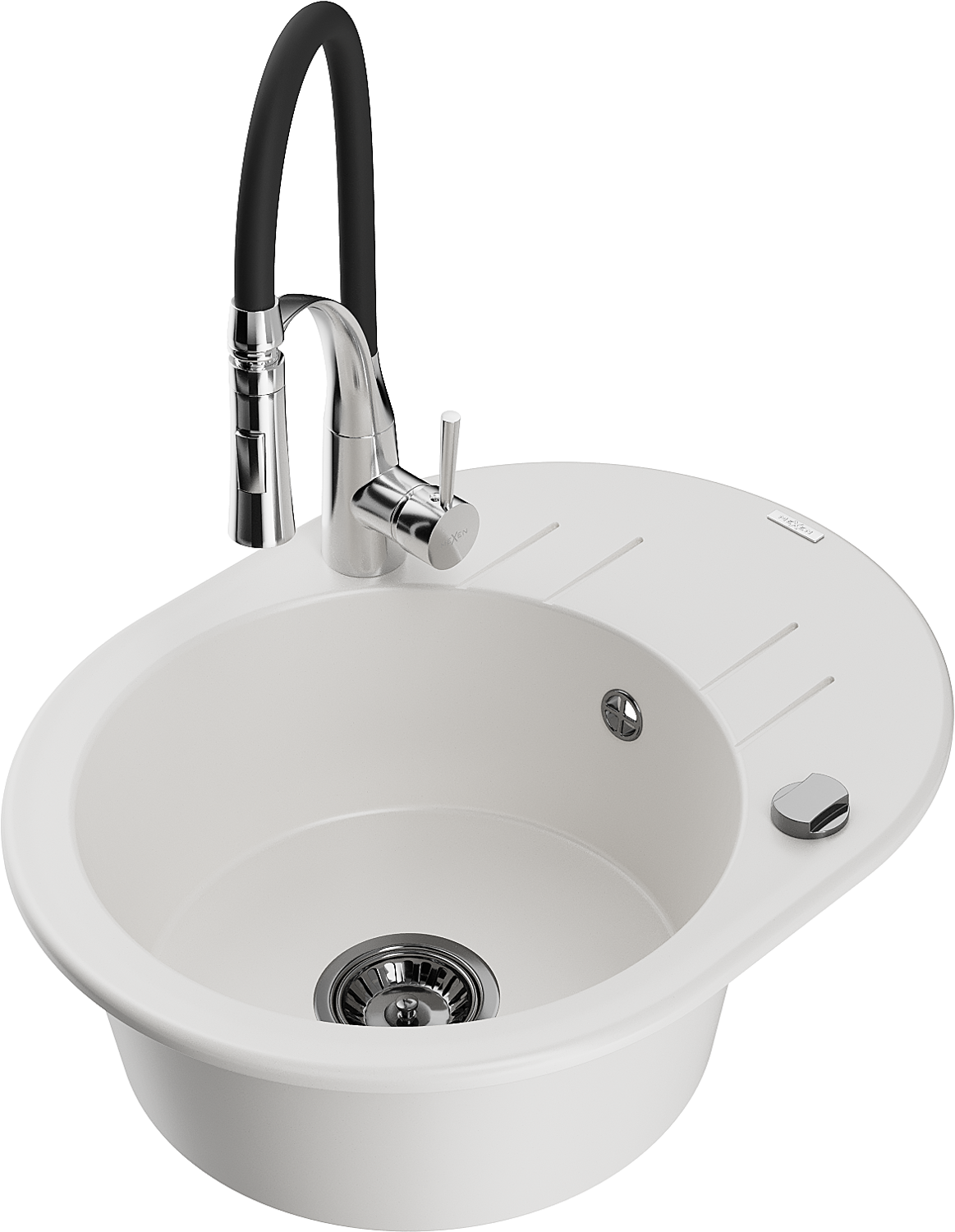 Mexen Kevin fregadero de granito de 1 compartimento con escurridor y grifo de cocina Aster, blanco - 6517-20-73450-07-B