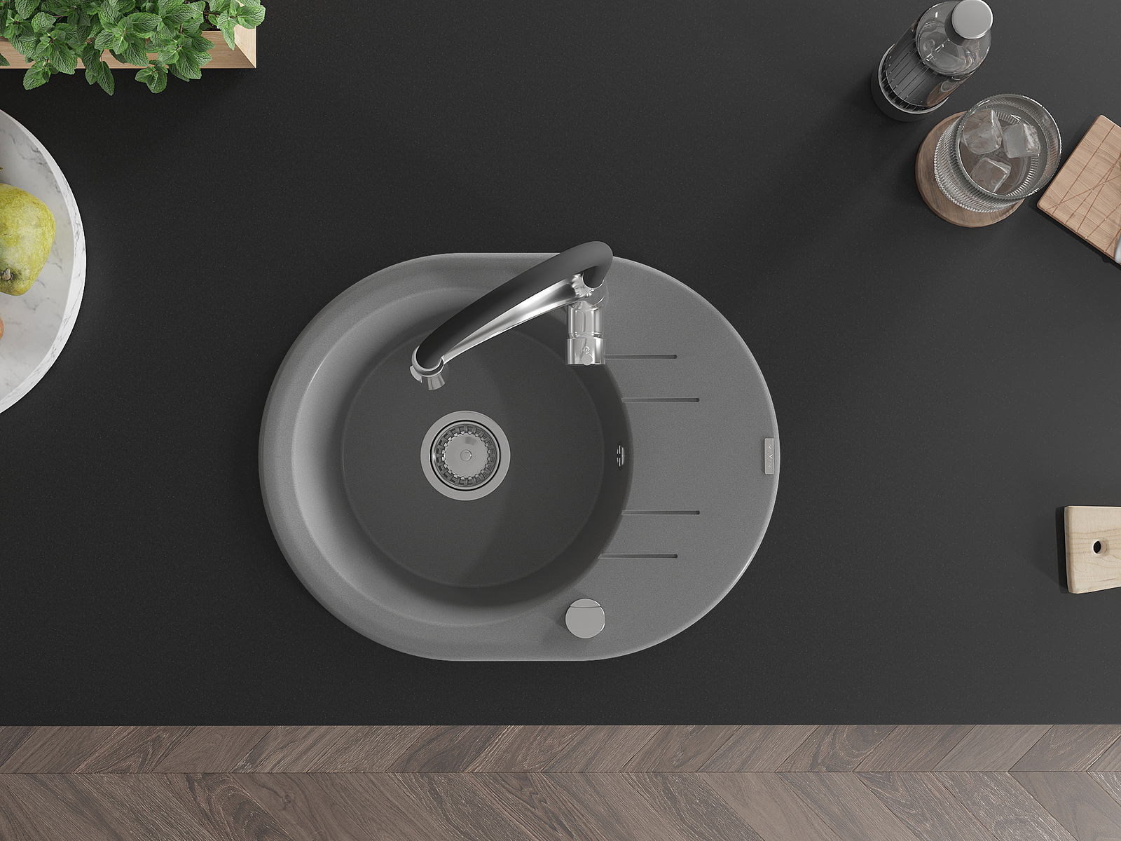 El fregadero está hecho de granito de alta calidad. Constituye un complemento elegante y, sobre todo, práctico para cualquier cocina, independientemente de su estilo. La alta calidad y durabilidad del granito aseguran un uso durante muchos años.