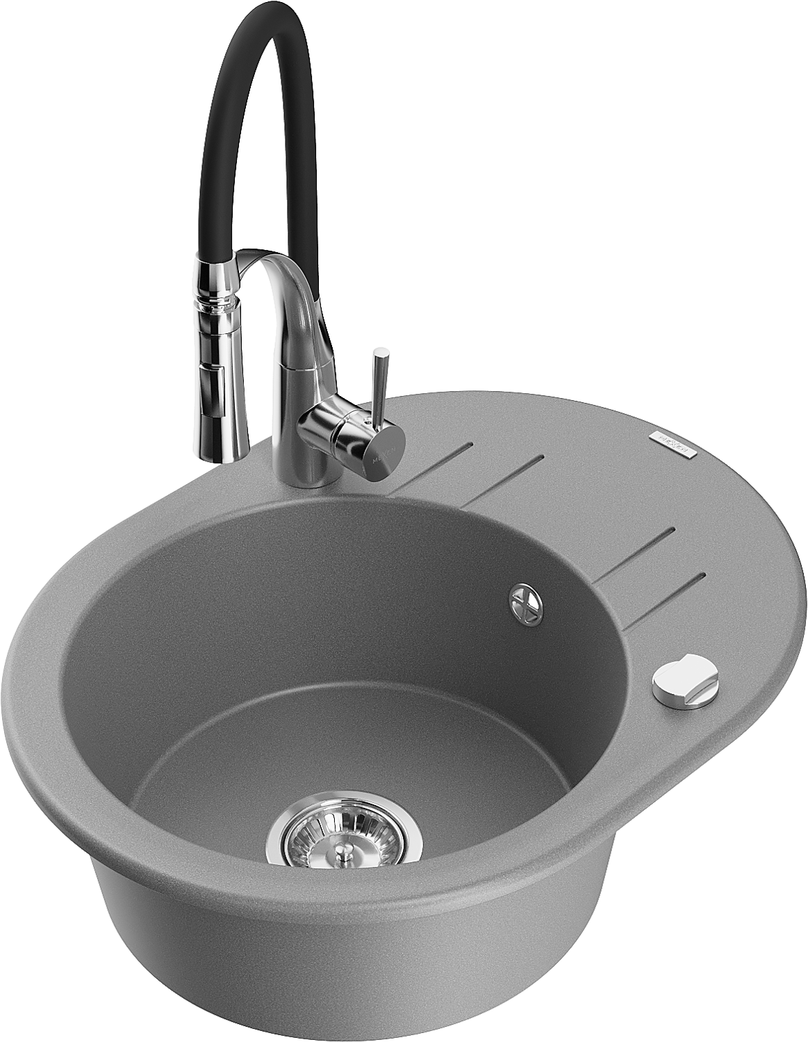 Mexen Kevin fregadero de granito de 1 cubeta con escurridor y grifo de cocina Aster, gris - 6517-71-73450-07
