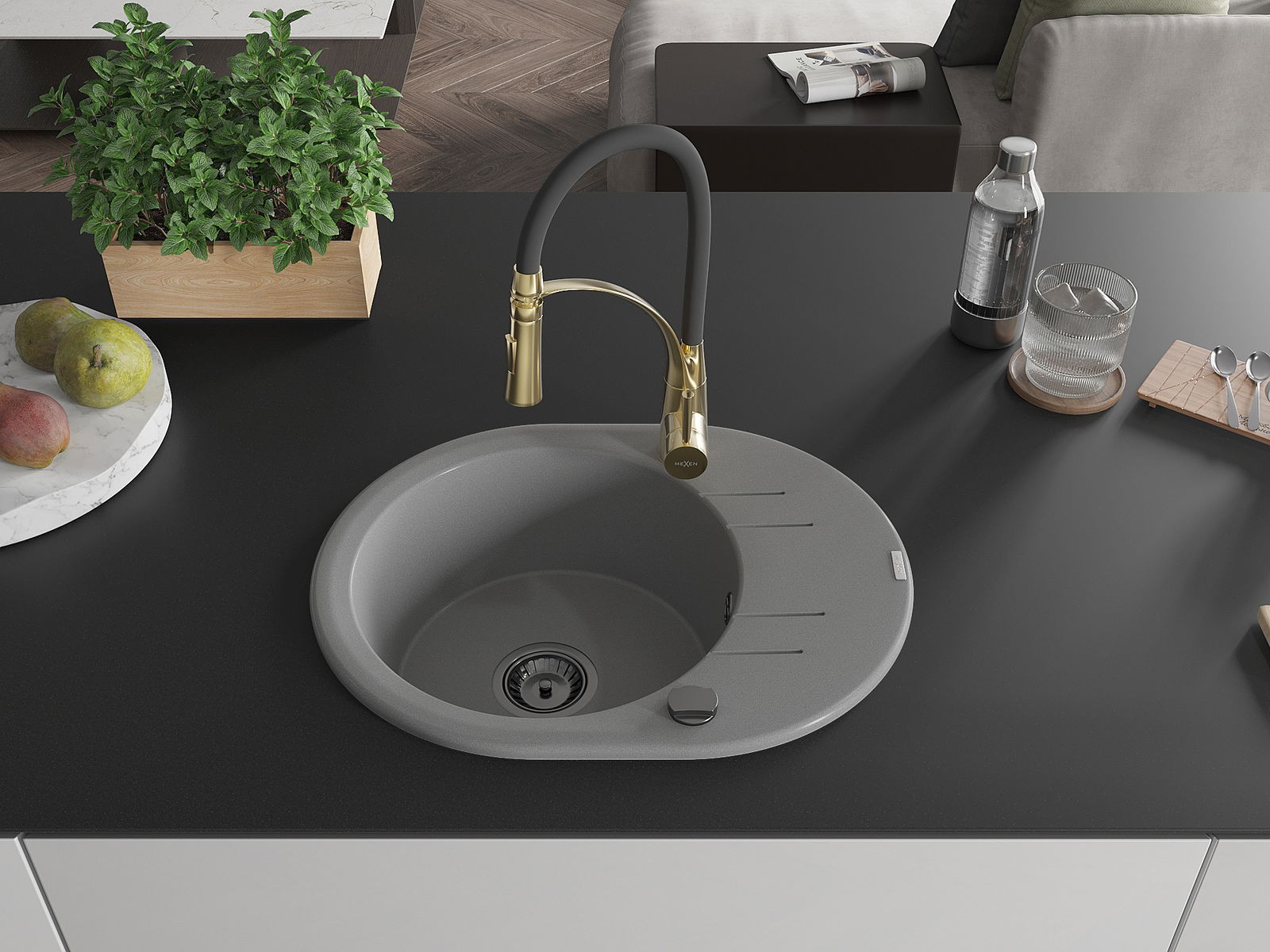 El fregadero está hecho de granito de alta calidad. Constituye un complemento elegante y, sobre todo, práctico para cualquier cocina, independientemente de su estilo. La alta calidad y durabilidad del granito aseguran un uso durante muchos años.