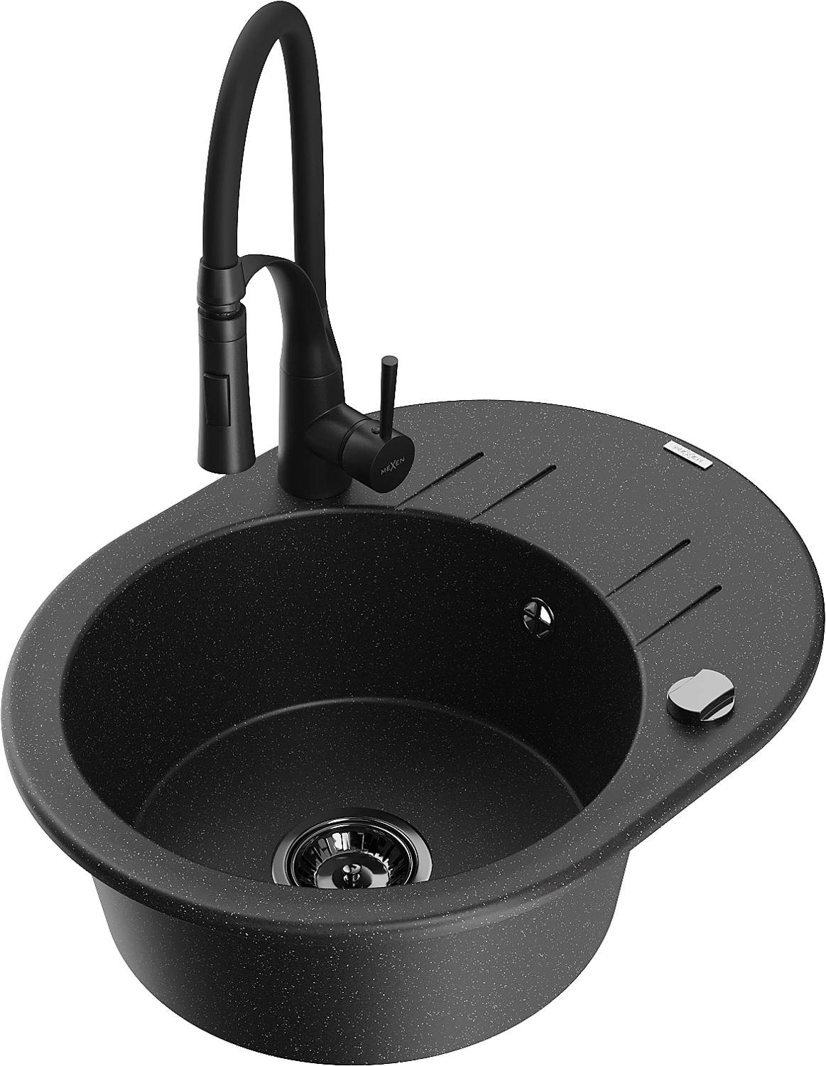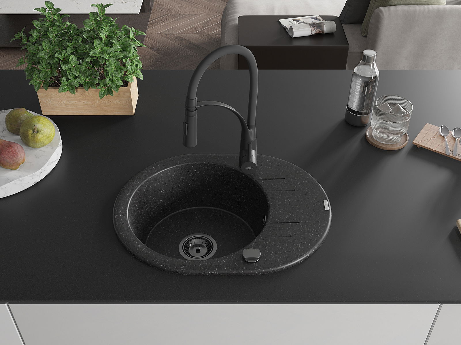 Mexen Kevin fregadero de granito de 1 seno con escurridor y grifo de cocina Aster, negro/plateado metálico - 6517-73-73450-70-B