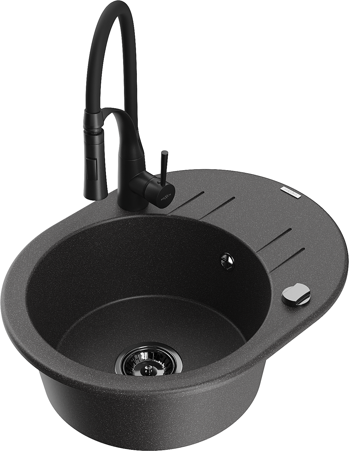 Mexen Kevin fregadero de granito de 1 cuenca con escurridor y grifo de cocina Aster, negro moteado - 6517-76-73450-70-B
