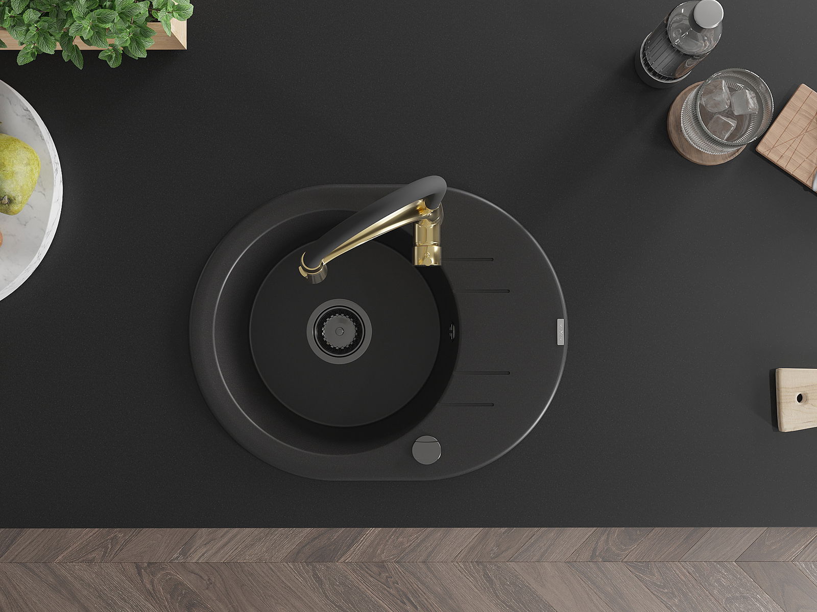 El fregadero está hecho de granito de alta calidad. Constituye un complemento elegante y, sobre todo, práctico para cualquier cocina, independientemente de su estilo. La alta calidad y durabilidad del granito aseguran un uso durante muchos años.