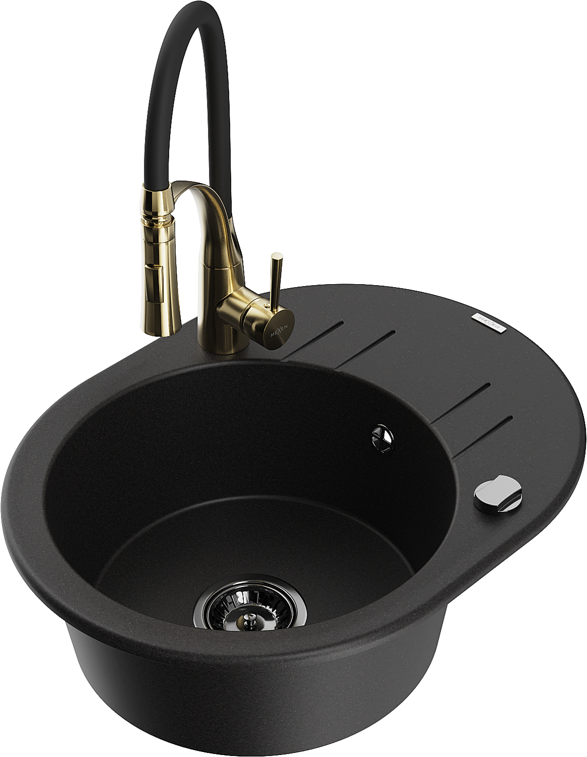Mexen Kevin fregadero de granito de 1 seno con escurridor y grifo de cocina Aster, negro - 6517-77-73450-57-B