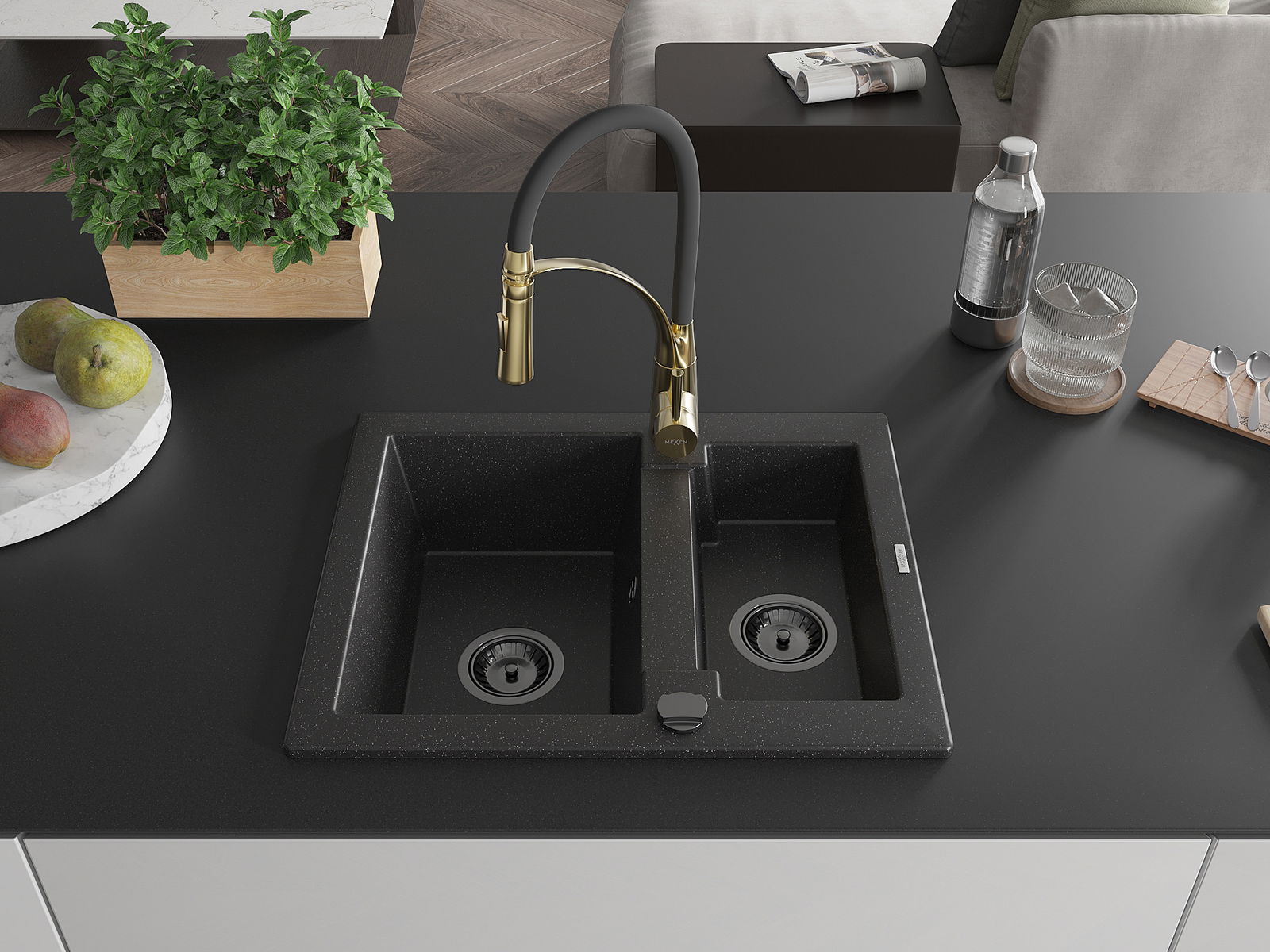 El fregadero está hecho de granito de alta calidad. Constituye un complemento elegante y, sobre todo, práctico para cualquier cocina, independientemente de su estilo. La alta calidad y durabilidad del granito aseguran un uso durante muchos años.