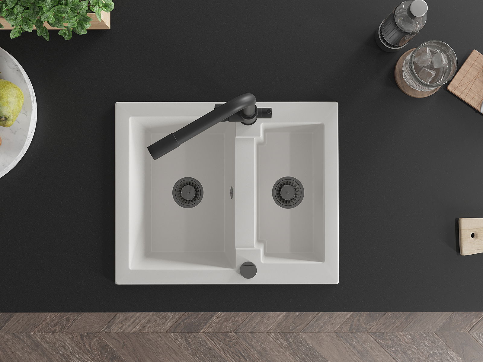 El fregadero está hecho de granito de alta calidad. Es un complemento elegante y, sobre todo, práctico para cualquier cocina, independientemente de su estilo. La alta calidad y durabilidad del granito aseguran un uso prolongado durante años.