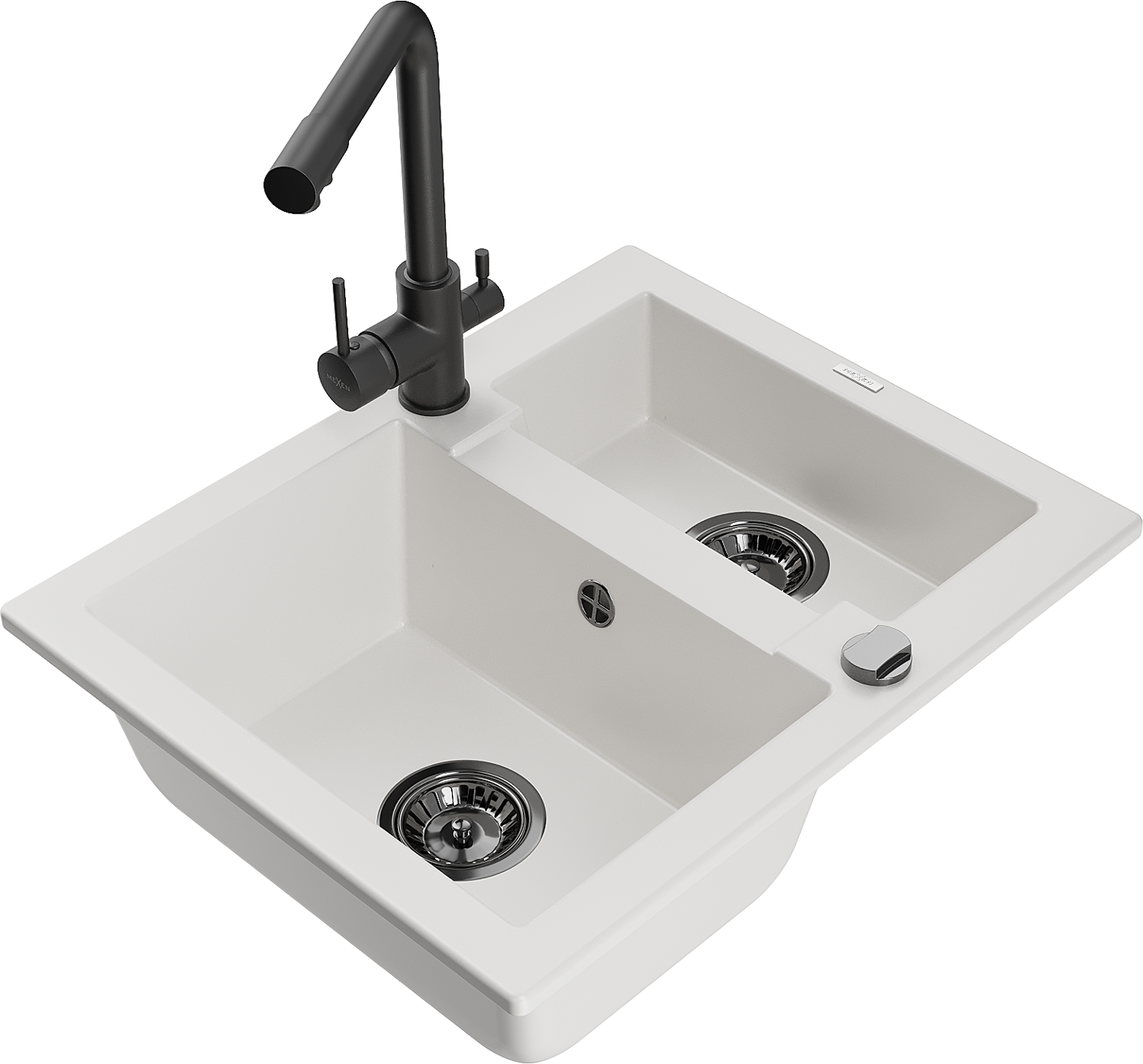 Mexen Carlos fregadero de granito 1,5 senos con grifo de cocina Duero, blanco - 6518-20-671600-70