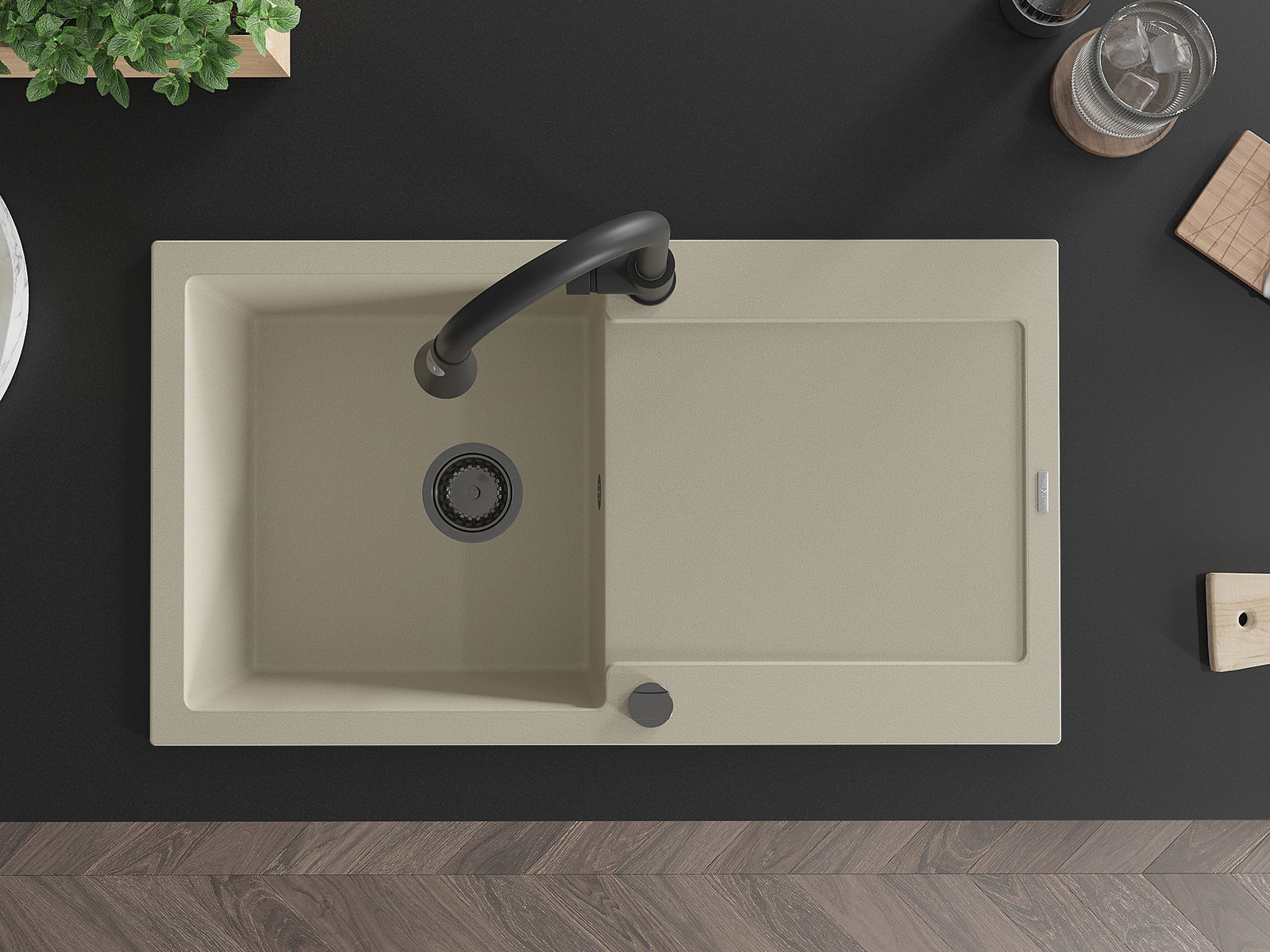 El fregadero está hecho de granito de alta calidad. Constituye un complemento elegante y, sobre todo, práctico para cualquier cocina, independientemente de su estilo. La alta calidad y durabilidad del granito aseguran un uso durante muchos años.