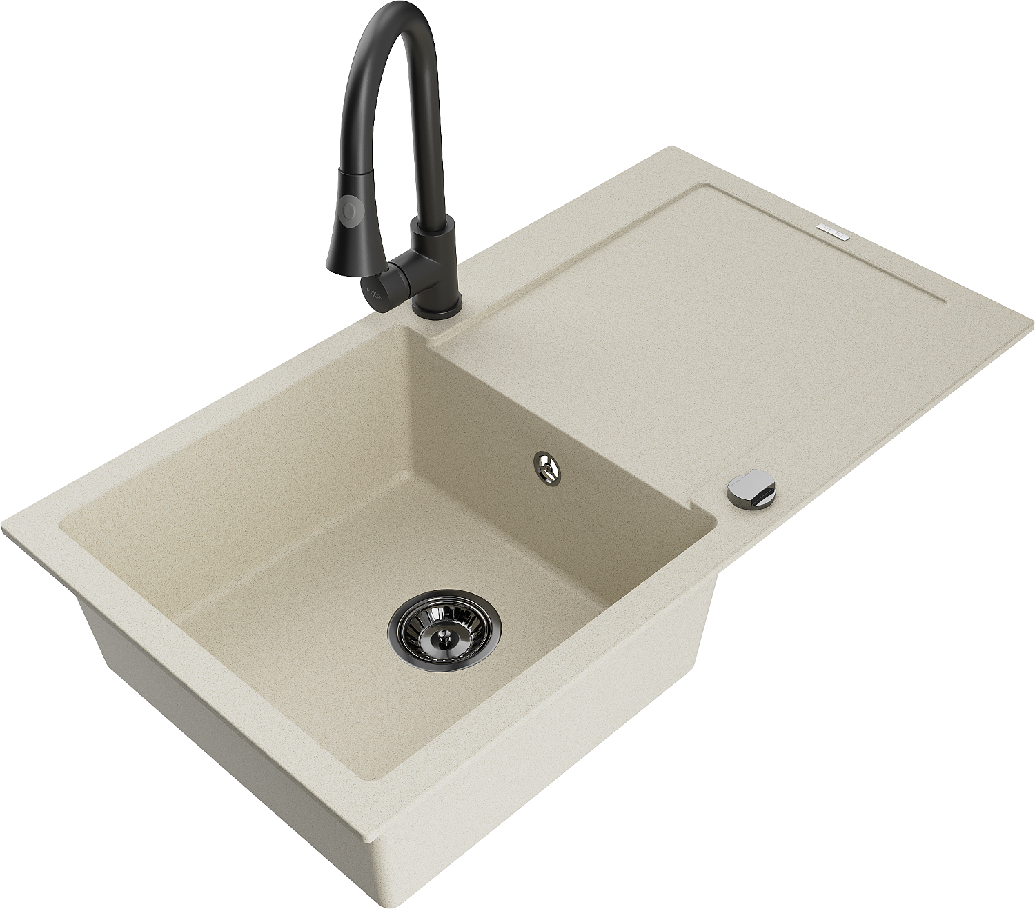 Mexen Leo fregadero de granito de 1 seno con escurridor y grifo de cocina Elia, beige - 6501-69-670101-70