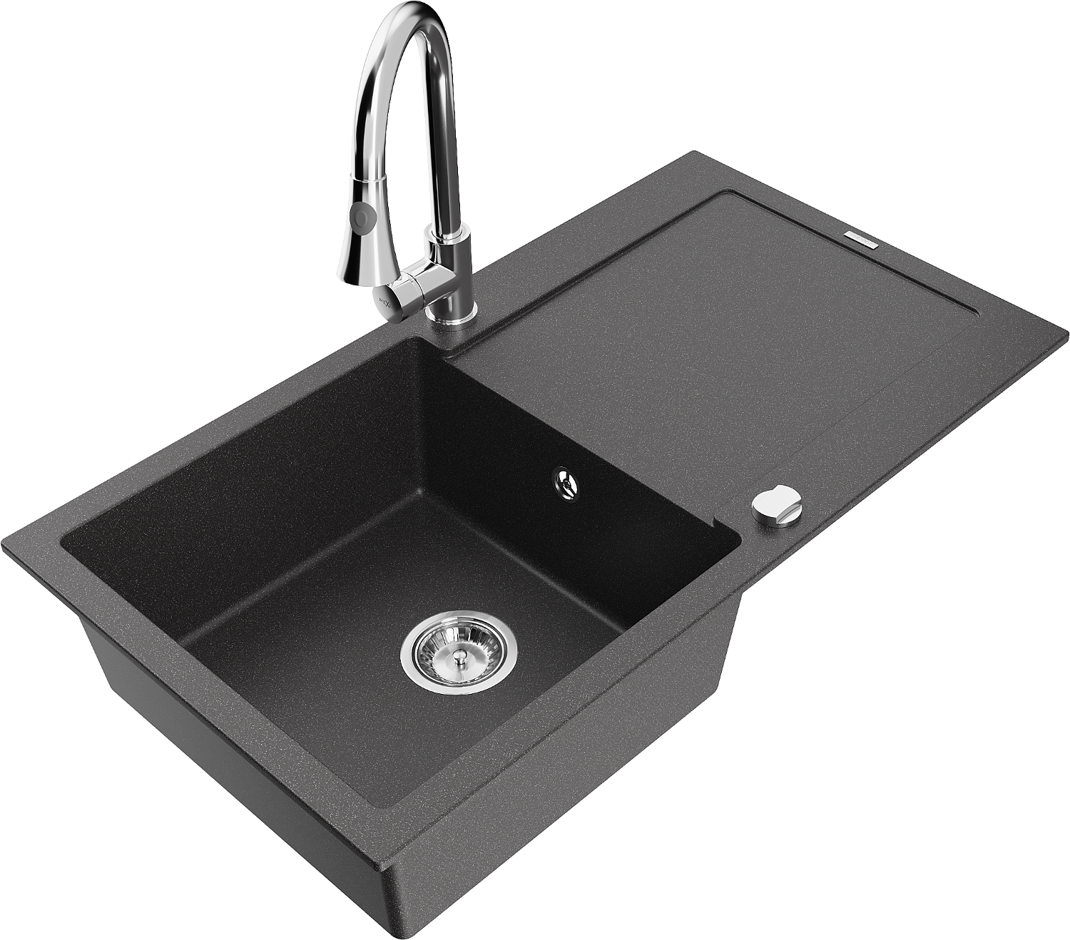 El fregadero está hecho de granito de alta calidad. Constituye un complemento elegante y, sobre todo, práctico para cualquier cocina, independientemente de su estilo. La alta calidad y durabilidad del granito aseguran un uso durante muchos años.