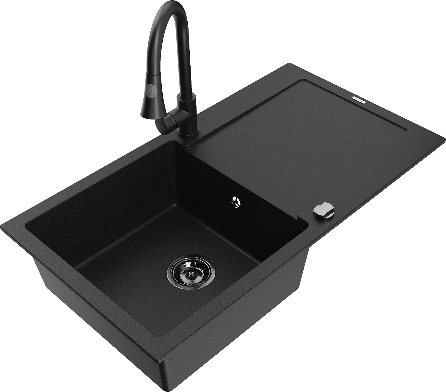Mexen Leo fregadero de granito de 1 seno con escurridor y grifo de cocina Elia, negro - 6501-77-670101-70-B
