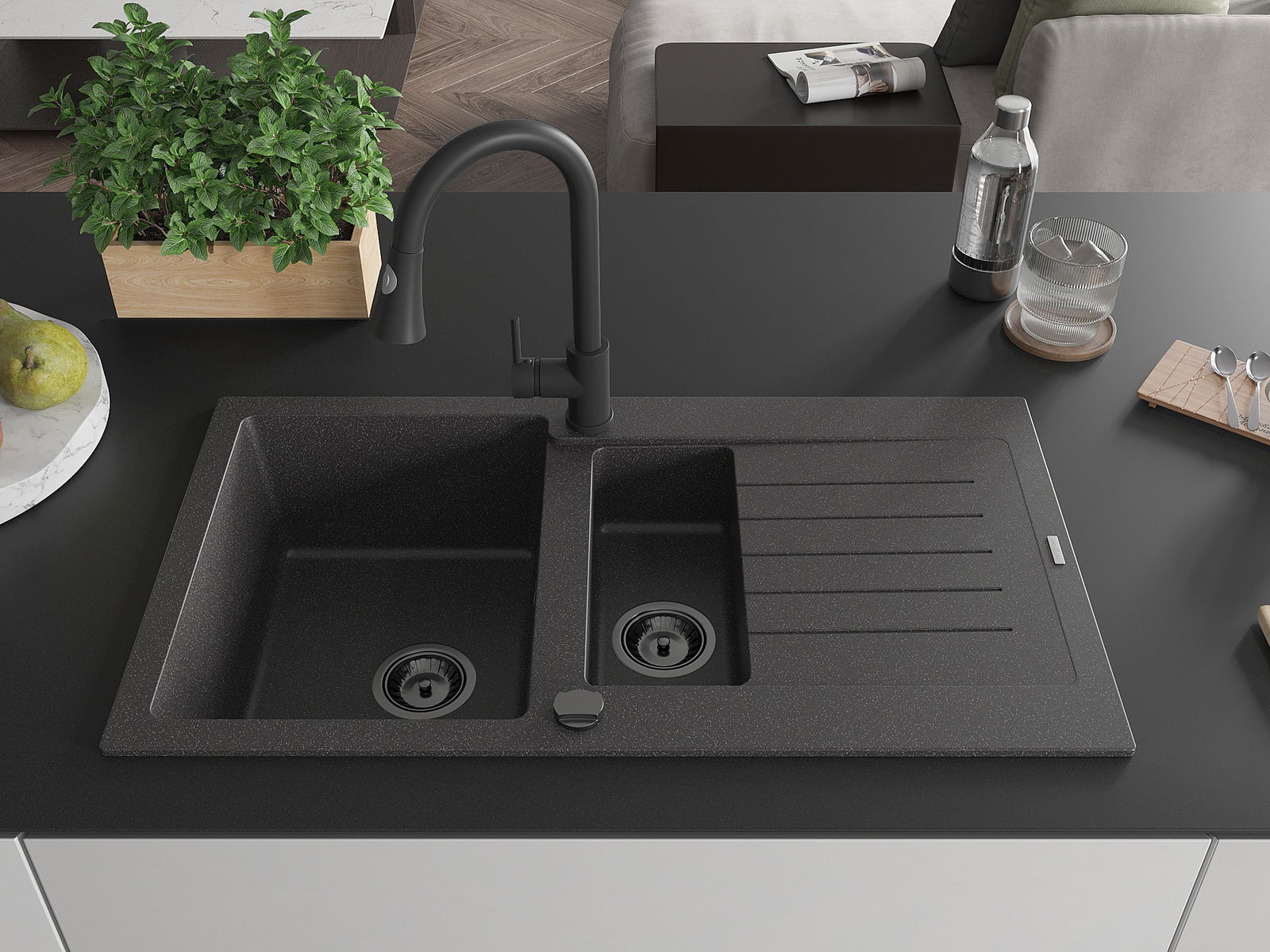 El fregadero está hecho de granito de alta calidad. Constituye un complemento elegante y, sobre todo, práctico para cualquier cocina, independientemente de su estilo. La alta calidad y durabilidad del granito aseguran un uso durante muchos años.