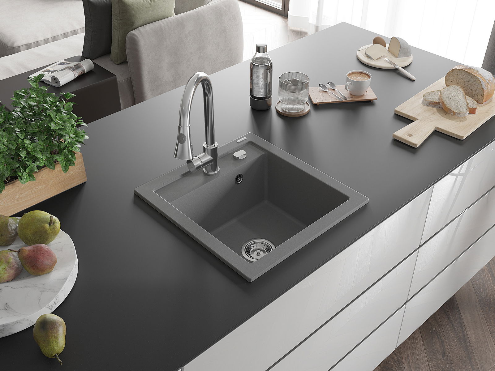 El fregadero está hecho de granito de alta calidad. Constituye un complemento elegante y, sobre todo, práctico para cualquier cocina, independientemente de su estilo. La alta calidad y durabilidad del granito aseguran un uso durante muchos años.