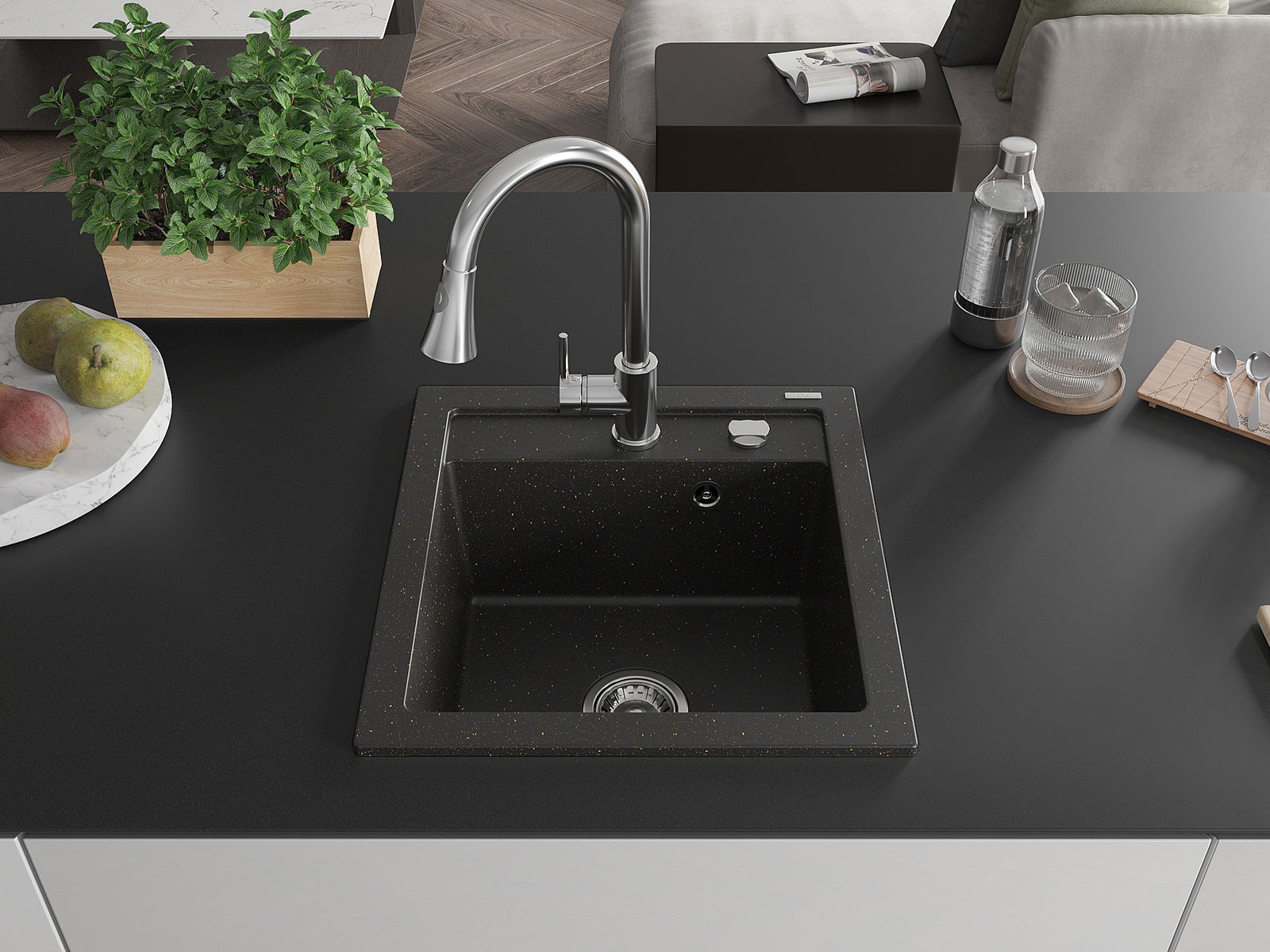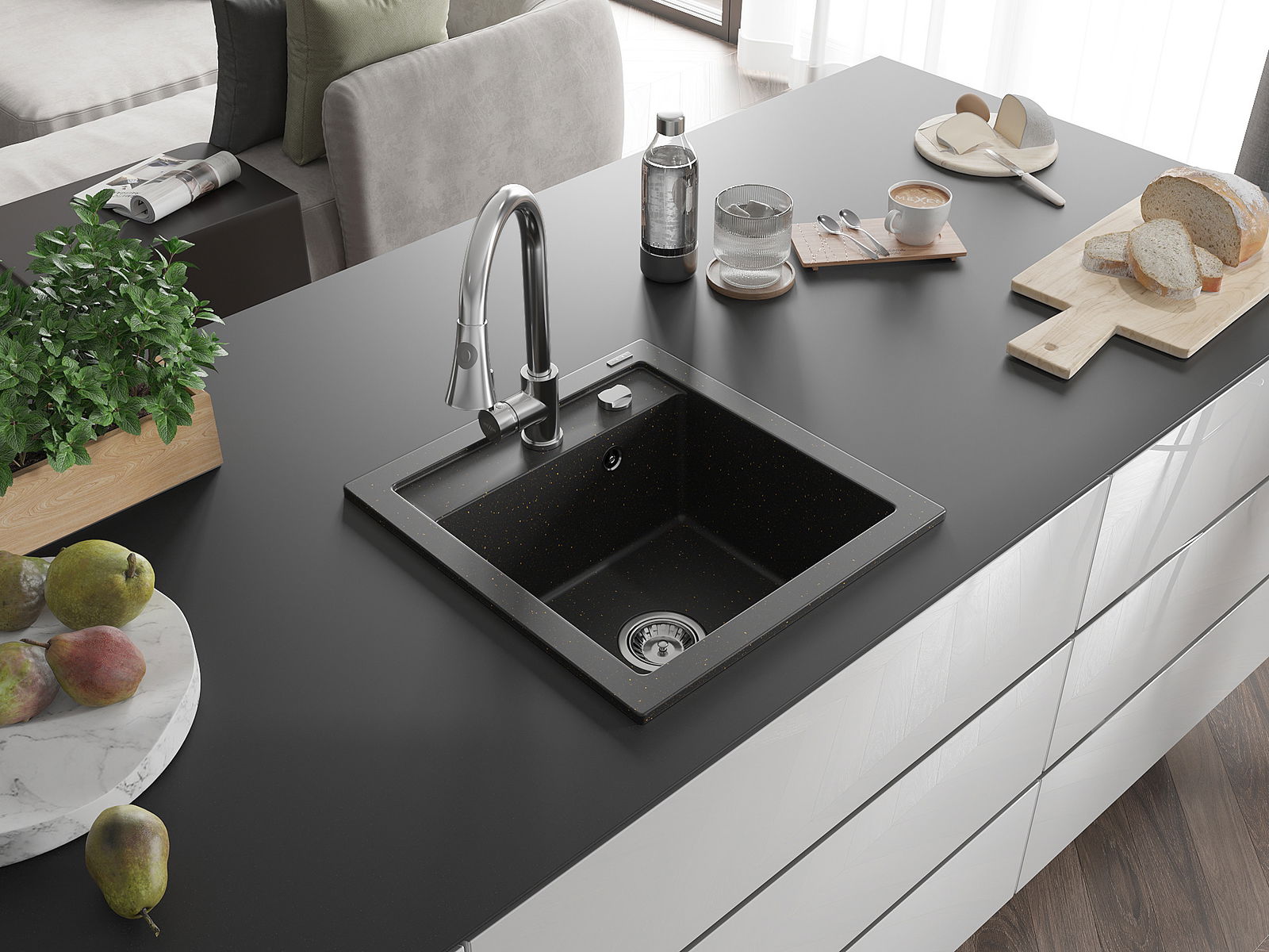 El fregadero está hecho de granito de alta calidad. Constituye un complemento elegante y, sobre todo, práctico para cualquier cocina, independientemente de su estilo. La alta calidad y durabilidad del granito aseguran un uso durante muchos años.