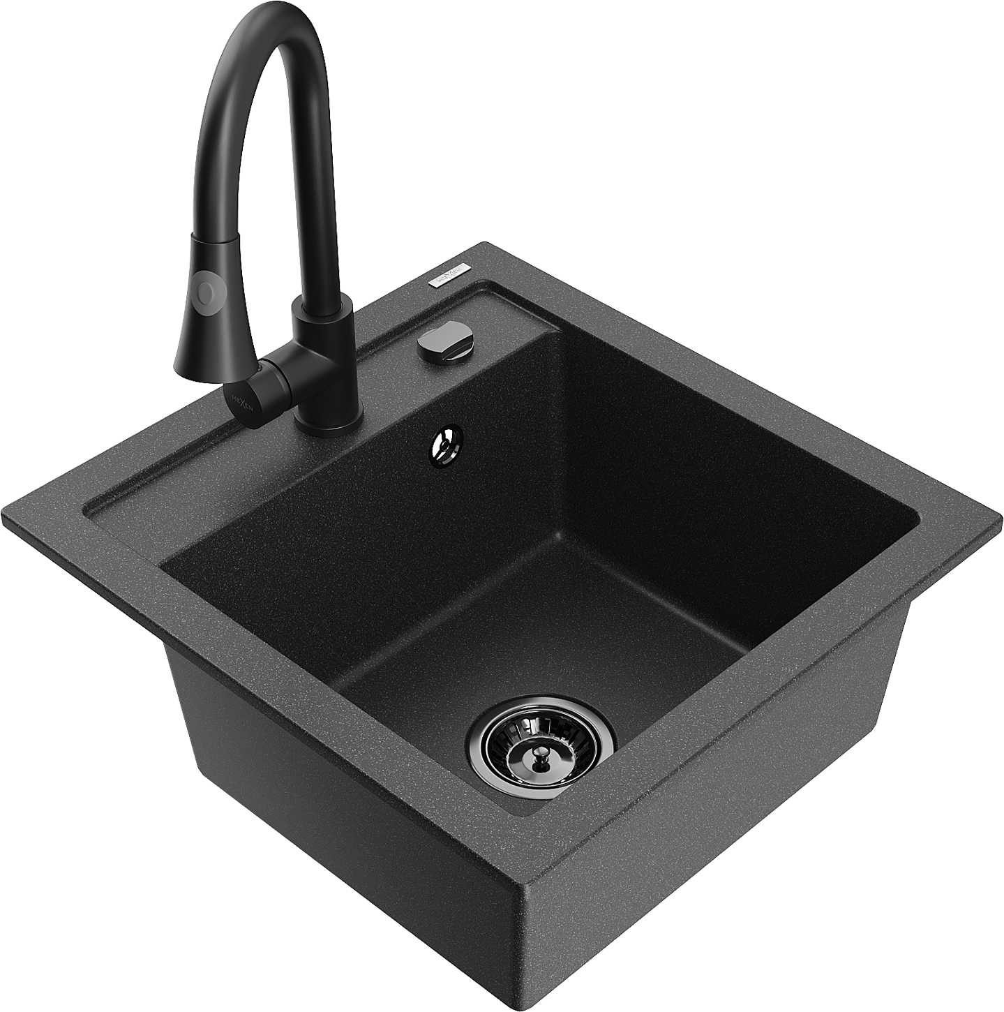 Mexen Vito fregadero de granito de 1 cubeta con grifo de cocina Elia, negro moteado - 6503-76-670101-70-B