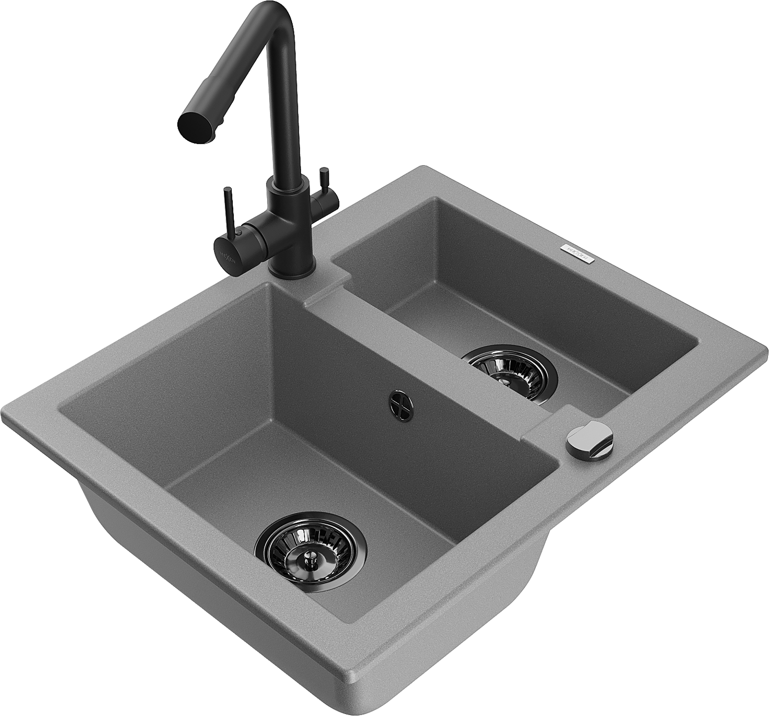 Mexen Carlos fregadero de granito de 1,5 senos con grifo de cocina Duero, gris - 6518-71-671600-70-B