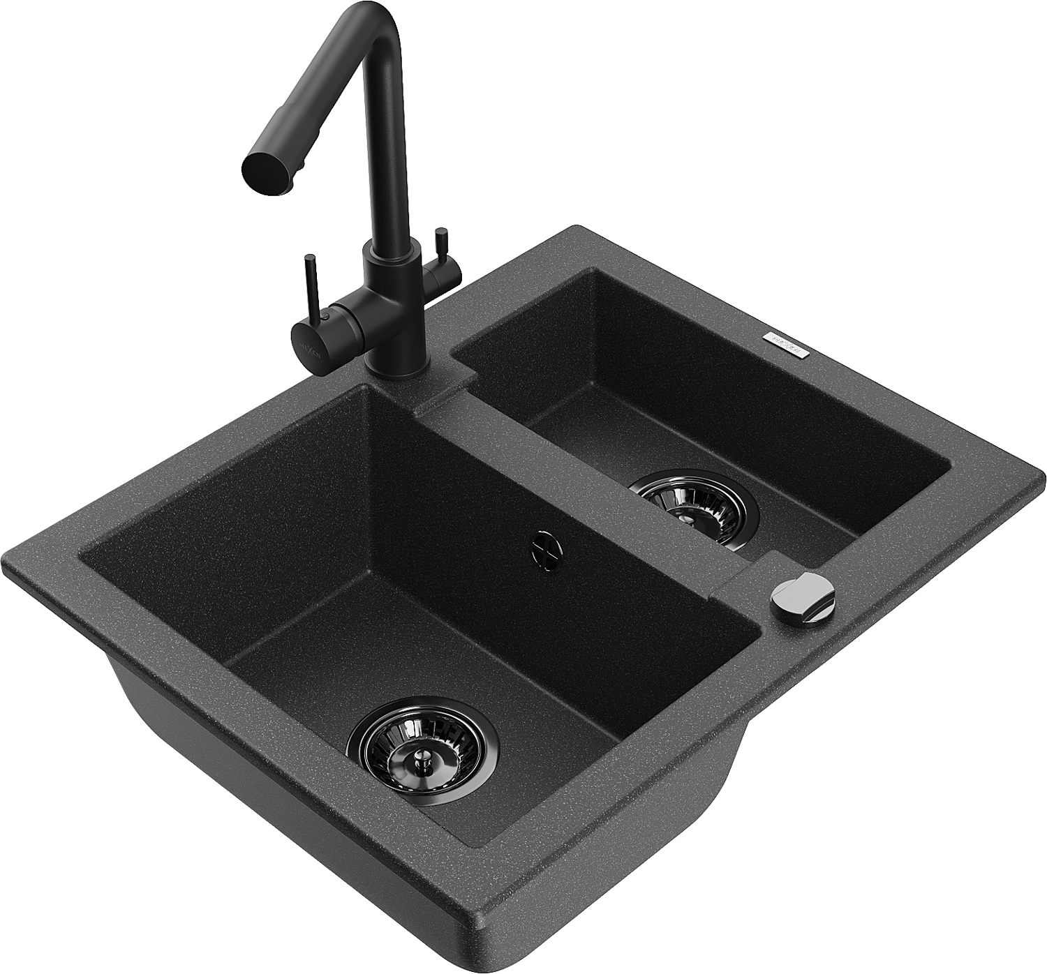 El fregadero está hecho de granito de alta calidad. Es un complemento elegante y, sobre todo, práctico para cualquier cocina, independientemente de su estilo. La alta calidad y durabilidad del granito aseguran un uso prolongado durante años.